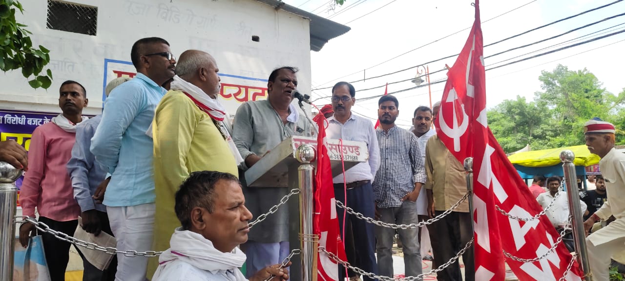 मेहरौना राजकीय विद्यालय आश्रम पद्धति में फूड से प्रभावित बच्चों का सही इलाज कराया जाय और मृतक छात्रों के परिवार को आर्थिक सहायता तत्काल मुहैया कराया जाए। दोषियों पर तत्काल कार्रवाई की जाए।लार थाने क्षेत्र में घटित हत्याकांड के अभियुक्तों की गिरफ्तारी कर अनुसूचित जाति जनजाति अधिनियम की धारा बढ़ाये जाये। कामरेड सतीश ने कहा कि तहसील के अंदर व्याप्त भ्रष्टाचार के खिलाफ अगर कोई लड़ाई लड़ता है तो वह लाल झंडे के साथी ही लड़ते हैं।तहसील सलेमपुर में भ्रष्टाचार चरम पर है यहां लेखपाल द्वारा जमीन की नापी के लिए 10000 से 20000 रुपए खर्च करना पड़ता है सोहनाग रोड पर हुए जल जमाव की तत्काल निकासी की व्यवस्था की जाए । इस धरने को जिला मंत्री कामरेड रामनिवास यादव , कामरेड गंगा देवी, कामरेड हरे कृष्णा कुशवाहा,दलित शोषण मुक्ति मंच से कामरेड प्रेमचंद यादव ,सुशील यादव कामरेड नियाज अहमद कामरेड बलिंदर मौर्य आदि लोगों ने संबोधित किया . इस धरने में राम छोटू चौहान , तारा देवी ,लीलावती देवी ,राजेंद्र गुप्ता, राजेश गुप्ता, कामरेड परवेज, विंध्याचल चौहान अनिल यादव लालबचन रामचंद्र खरवार शिवलाल और सैकड़ो साथी मौजूद रहे ।