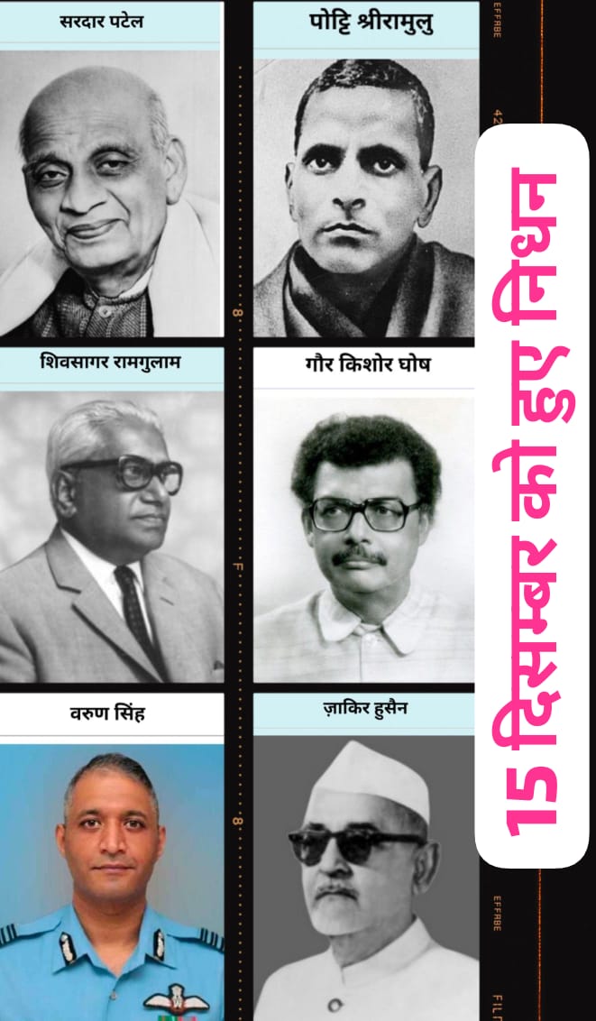 15 दिसंबर को हुए महत्वपूर्ण निधन हमें याद दिलाते हैं कि इतिहास व्यक्तियों से बनता है और उनके विचारों से जीवित रहता है। इन महान आत्माओं की विरासत आज भी हमारी संस्कृति, लोकतंत्र और राष्ट्रीय चेतना को दिशा दे रही है।
