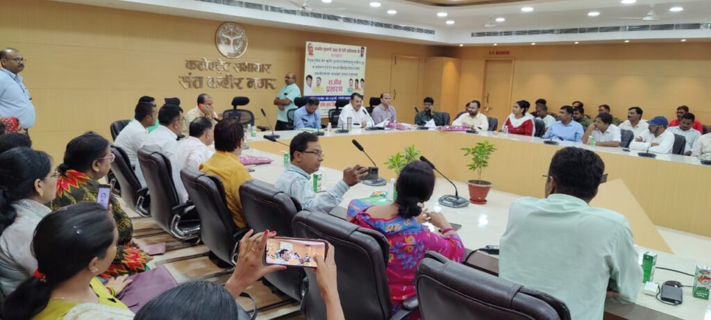 संत कबीर नगर (राष्ट्र की परम्परा)। निःशुल्क यूनिफार्म, स्वेटर, स्कूल बैग, जूता-मोजा तथा स्टेशनरी क्रय से सम्बन्धित धनराशि सीधे छात्र-छात्राओं के माता,पिता या अभिभावक के खाते में रू 1200/- का प्रत्यक्ष लाभ अन्तरण प्रक्रिया (डी0बी0टी0) किये जाने के साथ-साथ बेसिक शिक्षा विभाग के अन्तर्गत आरम्भ किये जाने वाले कार्यक्रमों/योजनाओं यथा – कस्तूरबा गांधी बालिका इण्टर कालेज के भवनों का लोकार्पण, जिला शिक्षा प्रशिक्षण संस्थानों में निर्मित अतिरिक्त कक्षा-कक्ष एवं आडिटोरियम का लोकार्पण, एन0सी0ई0आर0टी0 द्वारा विकसित कलांकूर, कलासूजन-2, इंटर्नशिप मैनुअल एवं सस्कृत भाषा किट विमोचन, लर्निंग बाई डूइंग कार्यक्रम से सम्बन्धित शिक्षक मैनुअल का विमोचन, पूर्व प्राथमिक शिक्षा हेतु को-लोकेटेड आंगनबाड़ी केन्द्रों को आई0आई0टी0 गांधी नगर द्वारा विकसित वंडर बॉक्स का वितरण आदि का शुभारम्भ मा0 मुख्यमंत्री योगी आदित्यनाथ जी के कर-कमलो द्वारा लोक भवन, लखनऊ में आयोजित कार्यक्रम के दौरान किया गया।