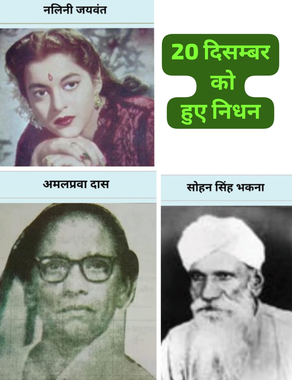 20 दिसंबर का दिन भारतीय इतिहास में केवल एक तारीख नहीं, बल्कि उन महान व्यक्तित्वों की स्मृति का प्रतीक है, जिनके जाने से राजनीति, सिनेमा, समाज सेवा और स्वतंत्रता संग्राम में अपूरणीय रिक्तता आई। आइए, 20 दिसंबर को हुए इन महत्वपूर्ण निधनों पर विस्तार से नज़र डालते हैं।
