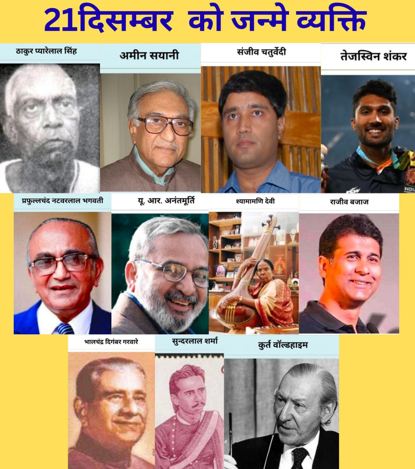 21 दिसंबर को जन्मे ये महान व्यक्तित्व अपने-अपने क्षेत्र में प्रकाशस्तंभ की तरह रहे। इनका जीवन हमें यह सिखाता है कि कर्म, समर्पण और साहस से इतिहास रचा जा सकता है।