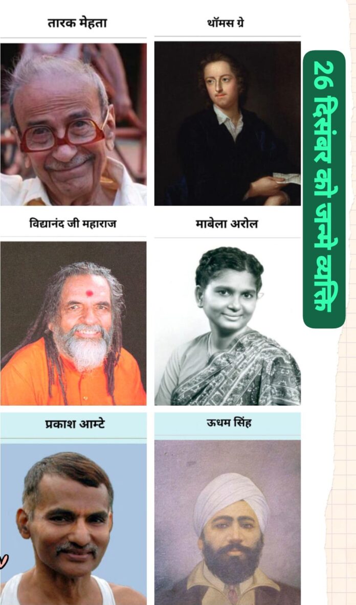 26 दिसंबर केवल एक तारीख नहीं, बल्कि इतिहास, बलिदान, सेवा, साहित्य और अध्यात्म का संगम है। इस दिन जन्मे महान व्यक्तित्वों ने अपने-अपने क्षेत्र में अमिट छाप छोड़ी और आने वाली पीढ़ियों को प्रेरणा दी।