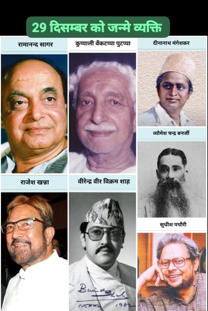 29 दिसंबर केवल एक तारीख नहीं, बल्कि यह उन महान व्यक्तित्वों की जन्मतिथि है, जिनकी प्रतिभा, विचार और कर्मों ने समाज, साहित्य, सिनेमा, राजनीति और संस्कृति को नई पहचान दी। इस दिन जन्मे लोग अपने-अपने क्षेत्र में युगद्रष्टा सिद्ध हुए। आइए इतिहास के इन महत्वपूर्ण जन्मदिनों पर विस्तार से प्रकाश डालते हैं—