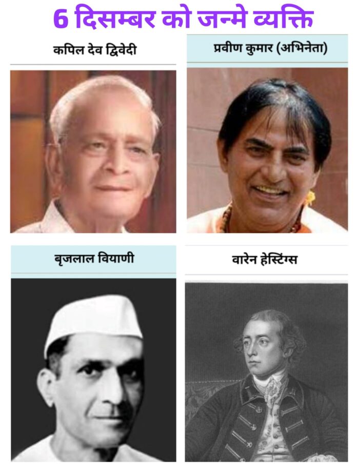 6 दिसंबर को जन्मे ये सभी व्यक्ति अपने-अपने क्षेत्र में एक अमिट छाप छोड़ गए। इनके जीवन की कहानी हमें यह सिखाती है कि एक साधारण जन्म भी असाधारण परिवर्तन ला सकता है, यदि उसमें सेवा, ज्ञान और संकल्प की सच्ची भावना हो।