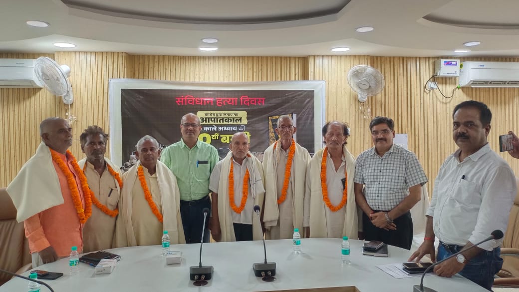 मऊ (राष्ट्र की परम्परा) आपातकाल के 50वीं वर्षगांठ पर बुधवार को विकास भवन में कार्यक्रम का आयोजन किया गया। इस कार्यक्रम के दौरान लोकतंत्र सेनानियों को सम्मानित करने के साथ ही विकास भवन में आपातकाल से संबंधित चित्र प्रदर्शनी भी लगाई गई। कार्यक्रम के दौरान आपातकाल से संबंधित वीडियो का भी प्रसारण किया गया। लोकतंत्र सेनानियों ने उस दौर के अपने अनुभव को भी साझा किया। जिन लोकतंत्र सेनानियों को सम्मानित किया गया उनमें देवेंद्र सिंह,विनोद कुमार तिवारी, बालकरन, बालचंद राम, रमाशंकर सिंह एवं बृजनाथ सिंह शामिल है। इन सभी ने कार्यक्रम के दौरान आपातकाल के अनुभव को लोगों से साझा किया। इन्हें फूल माला एवं अंग वस्त्र से सम्मानित किया गया।इस दौरान मुख्य विकास अधिकारी प्रशांत नागर,जिला विकास अधिकारी उमेश चंद तिवारी, परियोजना निदेशक रामबाबू त्रिपाठी सहित अन्य जनपद स्तरीय अधिकारी एवं कर्मचारी भी उपस्थित रहे।