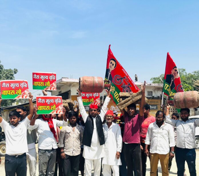 सपा नेता विजय रावत के नेतृत्व में कार्यकर्ताओं ने गैस सिलेंडर, लकड़ी और कंडा लेकर प्रदर्शन किया तथा सरकार विरोधी नारे लगाते हुए बढ़े हुए दाम वापस लेने की मांग की।