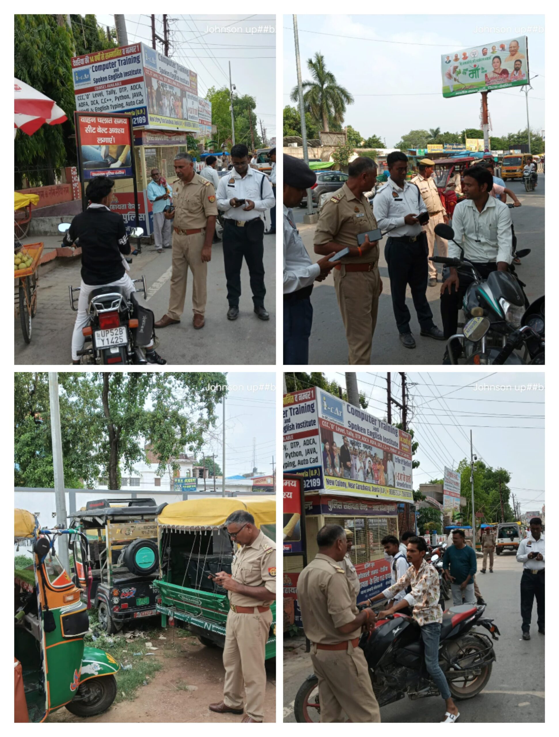 देवरिया (राष्ट्र की परम्परा)। पुलिस अधीक्षक देवरिया विक्रान्त वीर के निर्देशन में यातायात पुलिस द्वारा सड़क दुर्घटनाओं की रोकथाम को लेकर विशेष अभियान चलाया गया। इस अभियान का नेतृत्व यातायात प्रभारी श्री गुलाब सिंह ने किया।अभियान के तहत शहर क्षेत्र में विशेष चेकिंग की गई, जिसमें बिना हेलमेट दोपहिया वाहन चालकों, गलत नंबर प्लेट वाले वाहनों तथा रोडवेज बस स्टैंड के पास सड़क पर अनियमित तरीके से सवारी चढ़ाने-उतारने वाले वाहनों के विरुद्ध मोटर व्हीकल एक्ट के अंतर्गत कार्रवाई की गई।इस दौरान कुल 96 वाहनों का ई-चालान किया गया, 4 वाहनों को सीज किया गया तथा कई वाहन चालकों को मौके पर यातायात नियमों के प्रति जागरूक किया गया।