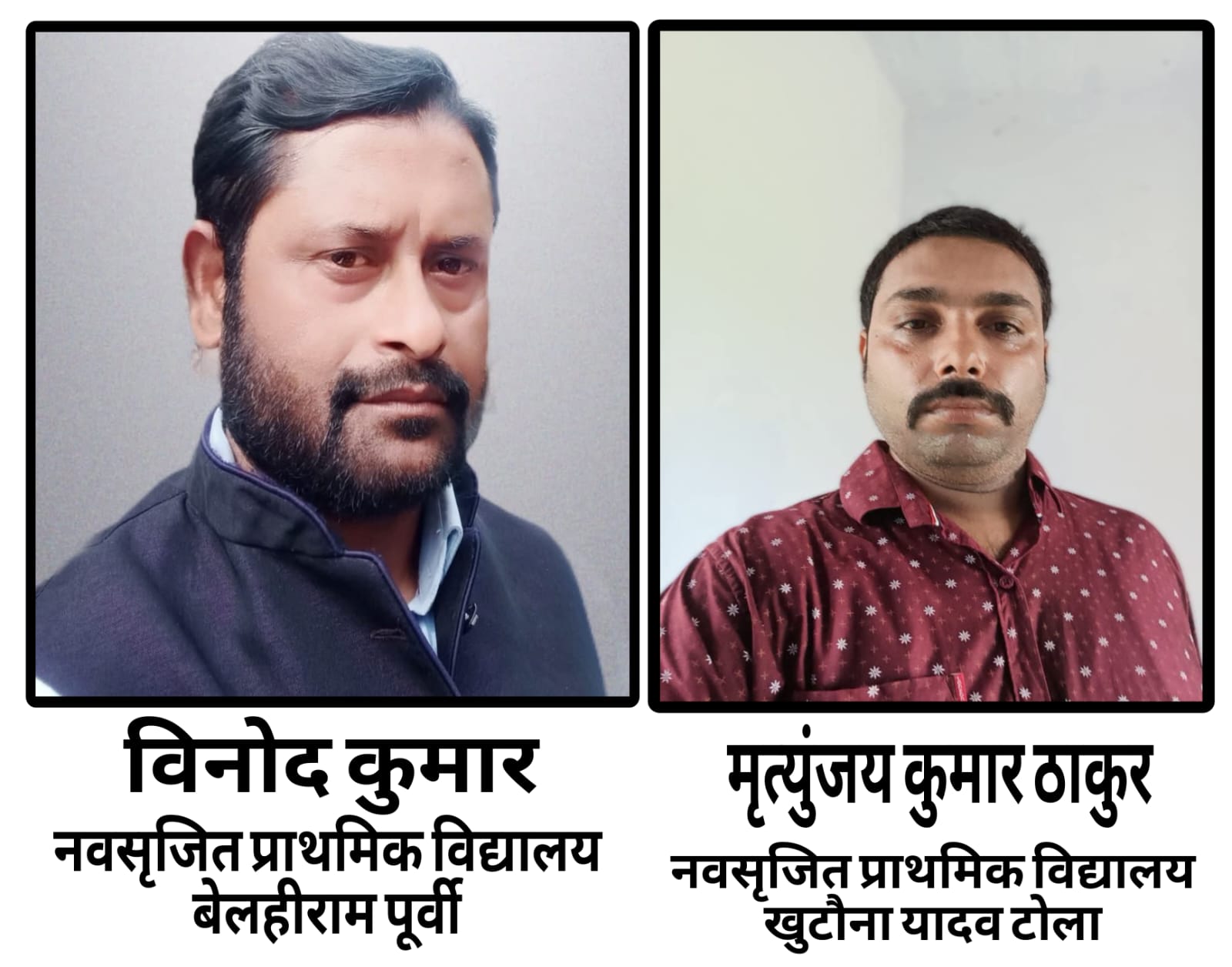 विभिन्न मंचों पर कलात्मक प्रस्तुति देने,विभिन्न कलात्मक गतिविधि,खेल गतिविधि,विज्ञान गतिविधि,कार्यशाला,प्रदर्शनी में शामिल होने एवं आयोजन के सफल संचालन में सहयोग हेतु पताही प्रखण्ड के तीन शिक्षकों क्रमशः विनोद कुमार, नवसृजित प्राथमिक विद्यालय बेलाहीराम पूर्वी, मृत्युंजय कुमार ठाकुर, नवसृजित प्राथमिक विद्यालय खुटौना यादव टोला एवं अराधना कुमारी, ज्योति सूर्य प्रोजेक्ट गर्ल्स हाई स्कूल का हुआ चयन। उक्त शिक्षकों के चयन पर प्रखण्ड शिक्षा पदाधिकारी, प्रखण्ड परियोजना प्रबंधक सहित शिक्षक रविरंजन कुमार, आलोक कुमार, सचिन कुमार, अमित कुमार, दीपक कुमार, कुमार राजेश, मनीष नीरज, शैलेश कुमार, नीरज कुमार सिंह, अभिमन्यु चंद्रवंशी ने बधाई दी है।