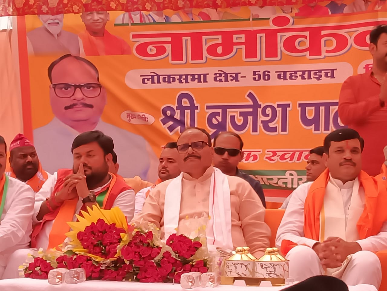 बहराइच (राष्ट्र की परम्परा) । भाजपा प्रत्याशी डॉक्टर आनंद गोंड़ ने अपना नामांकन पत्र दाखिल किया जहां नामांकन के दौरान बहराइच पहुंचे उत्तर प्रदेश के उपमुख्यमंत्री ब्रजेश पाठक ।भाजपा प्रत्याशी आनंद गोंड के समर्थन में जनसभा को सम्बोधित करने एवं उनके नामांकन के लिये उत्तर प्रदेश के डिप्टी सीएम ब्रजेश पाठक बहराइच पहुंचे इस दौरान उनका जगह-जगह कार्यकर्ताओं ने फूल माला पहनाकर स्वागत किया और बहराइच पहुंचते ही जनसभा को सम्बोधित करते हुये ब्रजेश पाठक ने विपक्ष पर जमकर हमला किया। डिप्टी सीएम ने कहा कि बहराइच से लोकसभा प्रत्याशी आनंद गोंड प्रचंड बहुमत से विजयी हो रहें हैं। ब्रजेश पाठक ने कहा की यहां मुकाबला ही नहीं है।विपक्ष की जमानत जब्त हो रही है कोई दूसरा दल टक्कर नहीं दे रहा है और कहा की यहां की आबोहवा मैंने देखी है जिस तरह से लाखों लोगों की भीड़ मैं देख रहा हूं यह एकतरफा लड़ाई है। कहा कि अमेठी-रायबरेली सहित प्रदेश की सभी सीटों पर भारतीय जनता पार्टी एवं उसके सहयोगी दल जीत रहे हैं। उन्होंने यह भी कहा कि कैबिनेट मंत्री संजय निषाद के साथ मारपीट करने वालों को चिन्हित किया जा रहा है।उनके खिलाफ कड़ी कार्रवाई की जायेगी। बहराइच लोकसभा क्षेत्र से भाजपा प्रत्यासी आनंद गोंड ने अपने पिता अक्षयवर लाल का आशीर्वाद लिया और इसके बाद पंडित दीनदयाल एवं श्यामा प्रसाद मुखर्जी की प्रतिमा पर पुष्प अर्पित कर सिद्धनाथ मन्दिर में पूजा अर्चना की यहां से वे अपना नामांकन पत्र दाखिल करने पहुंचे इस मौके पर जनपद के पयागपुर से विधायक सुभाष त्रिपाठी, महसी विधायक सुरेश्वर सिंह, नानपारा विधायक राम निवास वर्मा, बहराइच सदर विधायक अनुपमा जायसवाल, एमएलसी प्रज्ञा त्रिपाठी, जिलाध्यक्ष ब्रिजेश पाण्डे समेत जिले के सभी पदाधिकारी एवं भारी संख्या में पार्टी कार्यकर्ता के साथ लोग उपस्थित रहे।