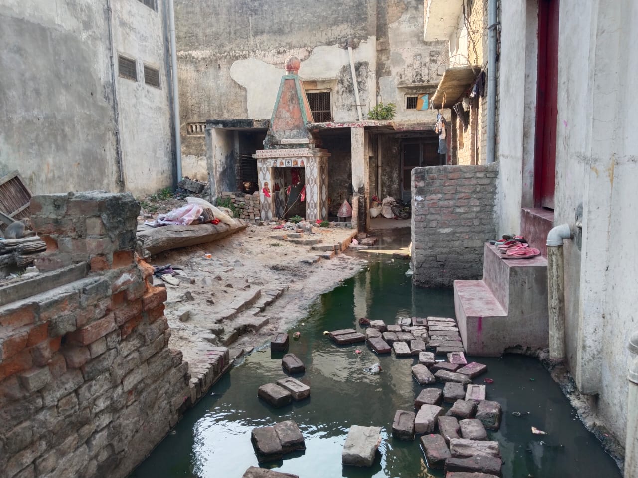 बहराइच( राष्ट्र की परम्परा)!जहां एक तरफ नवरात्रि आने वाला है वहीं दूसरी तरफ नगर क्षेत्र पयागपुर अंतर्गत कस्बा भूपगज बाजार में आस्थावान काली मंदिर के चारों तरफ भरा नालियों के गंदा पानी से श्रद्धालुओं को मंदिर पहुंचने में हो रही परेशानी!