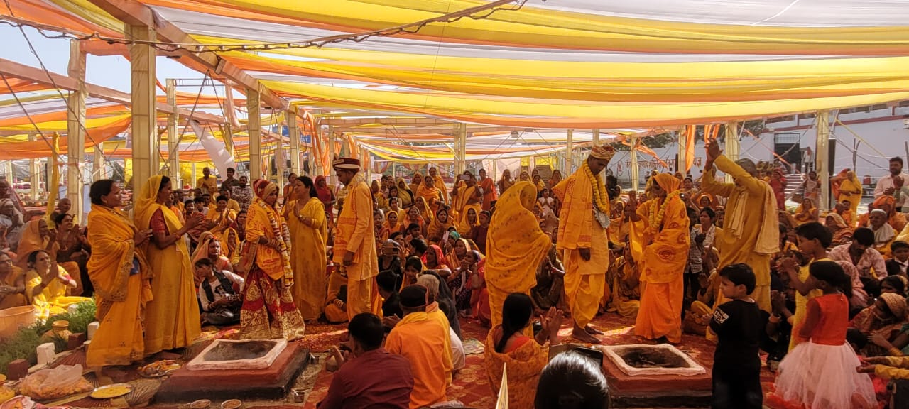 गायत्री महायज्ञ में मिहींपुरवा ब्लाक के भरत चौहान व बसंती चौहान, फखरपुर ब्लाक के अरुण कुमार व कुसमा देवी का वैदिक मंत्रोच्चार के साथ विवाह संस्कार कराया गया।