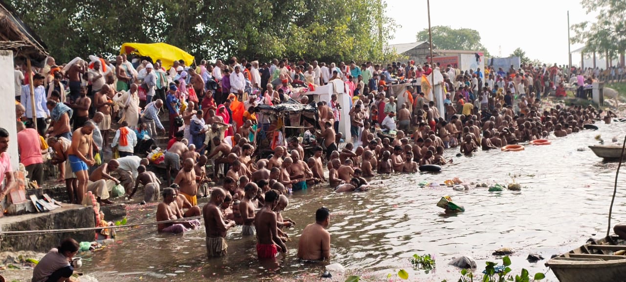 करनैलगंज/गोंडा(राष्ट्र की परम्परा)25 सितंबर.. पितृ विसर्जन के मौके पर करनैलगंज के सरयू घाट पर करीब दो लाख से अधिक श्रद्धालुओं ने स्नान दान कर पितरों को नमन करते हुए विसर्जित किया। रविवार को सरयू घाट पर सुबह 4 बजे से ही श्रद्धालुओं का भारी जमावड़ा होने लगा। गांव देहात से लोग ट्रैक्टर ट्राली, ऑटो, साइकिल, मोटरसाइकिल से सरयू घाट पहुंचने लगे और भोर से ही सरयू घाट पर स्नान का दौर शुरू हो गया। करीब दो लाख से अधिक श्रद्धालुओं ने सरयू में स्नान किया और अपने पितरों को नमन करते हुए पूजन अर्चन व दान किया। यह सिलसिला दोपहर बाद तक चलता रहा। सरयू घाट पर मेले का नजारा था पूरी तरह से सरयू घाट के आसपास का मैदान खचाखच भरा हुआ था। दूरदराज से आई तमाम दुकानें लगी थी। लोग खरीदारी भी कर रहे थे वही सरयू पुल के दोनों तरफ स्थित घाटों पर शाम तक हजारों की संख्या में श्रद्धालुओं का ताता लगा रहा। सरयू घाट पर श्रद्धालुओं के लिए कोई भी सुविधा पुलिस प्रशासन द्वारा नहीं की गई थी। नदी के भीतर केवल बैरिकेडिंग करके मेले को संपन्न करा लिया गया। यहां तक कि इतने बड़े मेले में पुलिस का एक भी कर्मचारी दिन में 9 बजे तक दिखाई नहीं दिया। भगवान भरोसे मेला संपन्न हो गया। मेले के मद्देनजर सरयू पुल एवं आसपास घंटों तक वाहनों का जाम लगा रहा। मगर पुलिस को जाम की भनक तक नहीं लगी और मेला संपन्न कराने के लिए पुलिस की तैनाती ही नहीं की गई। सूचना मिलने के बाद उप जिलाधिकारी हीरालाल सरयू घाट पहुंचे और घाट पर करीब 1 घंटे तक बैठकर शांतिपूर्ण मेला संपन्न कराया।