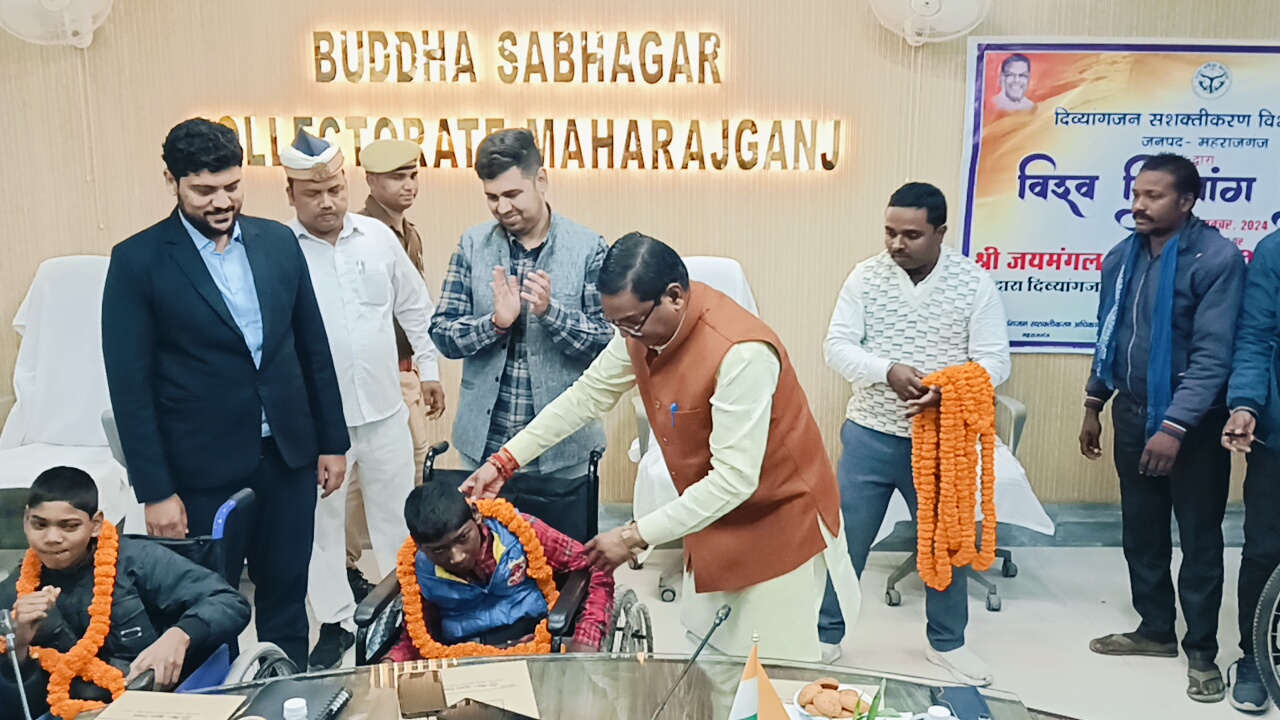 महराजगंज (राष्ट्र की परम्परा)। विश्व दिव्यांग दिवस पर जिला दिव्यांगजन सशक्तिकरण विभाग की ओर से कलेक्ट्रेट सभागार में दिव्यांगजन के साथ संवाद कार्यक्रम का आयोजन किया गया। कार्यक्रम के मुख्य अतिथि विधायक सदर जयमंगल कन्नौजिया उपस्थित रहे। संवाद कार्यक्रम को संबोधित करते हुए बतौर मुख्य अतिथि ने अपने संबोधन में कहा कि पूर्व में दिव्यांगजन को मिलने वाले लाभ बेहद कम थे और उनको विकलांग कहकर अपूर्णता का बोध कराया जाता था।प्रधानमंत्री बनने के साथ प्रधानमंत्री नरेंद्र मोदी ने सबसे पहले दिव्यांग नाम देकर उनमें विशिष्टता का बोध कराया और उनके आत्म-सम्मान को बढ़ाने का कार्य किया। इसके अलावा दिव्यांगों को मिलने वाले लाभों में भी वृद्धि की। दिव्यांगता की श्रेणी को भी बढ़ाने का कार्य किया।