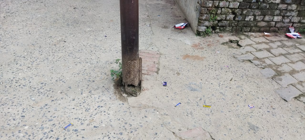 पटेल नगर पश्चिम में सड़क के किनारे लगे विद्युत पोल जर्जर हो चुका है यहां तक की पोल से लगे तार भी जमीन के तरफ लटक रहा है जिससे कभी भी दुर्घटना हो सकता है। अनुप भारती ने कहा कि बरसों पुराने जमाने के लोहे के विद्युत पोल रास्ते के किनारे लगाए गए हैं जो नीचे से झड़ गए हैं पोल बदलने के लिए विभाग को कई बार सूचना दिया गया लेकिन आज तक पोल नहीं बदला जिससे कभी भी दुर्घटना हो सकती है।