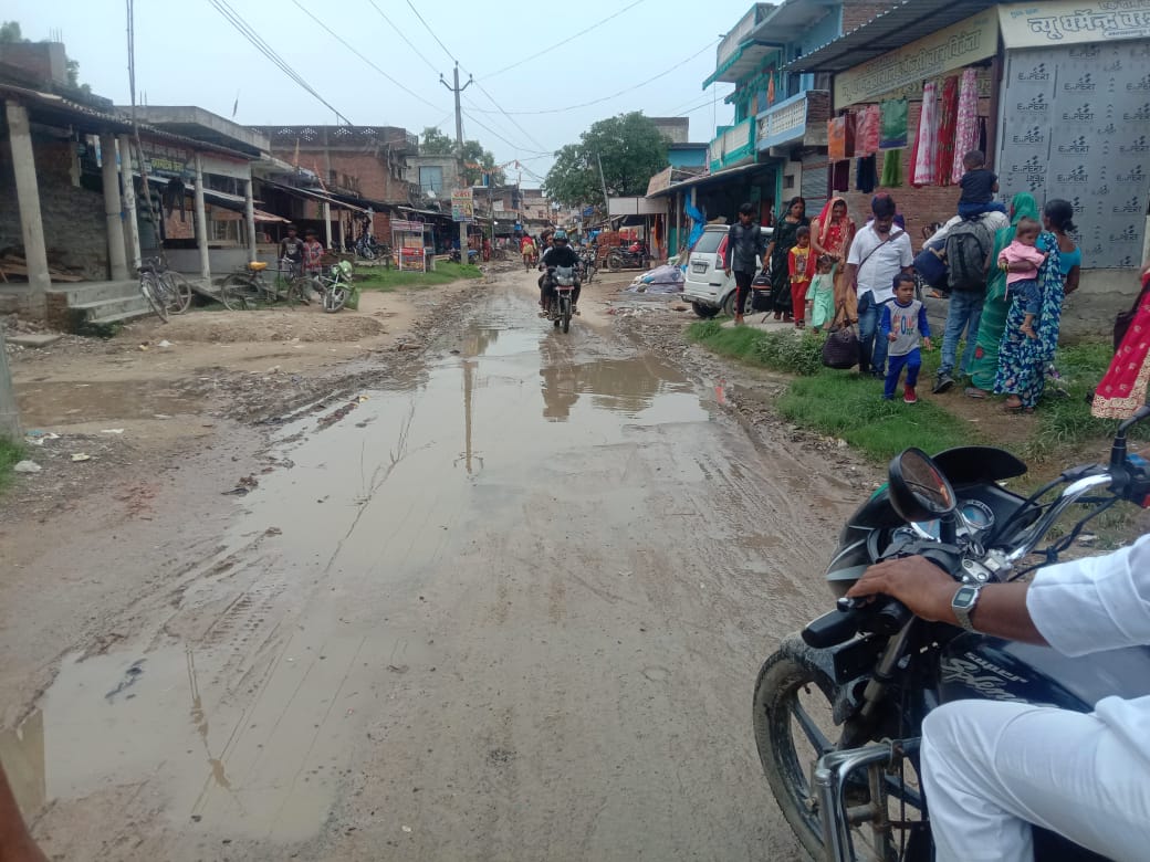 सीमावर्ती कस्बा की मुख्य सड़क जगह-जगह टूट कर गड्डे में हुई तब्दील