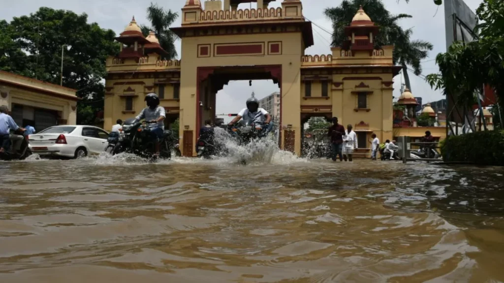 भारी बारिश के कारण बीएचयू अस्पताल परिसर में कमर तक पानी भर गया। इमरजेंसी, ओपीडी और ट्रॉमा सेंटर में जलभराव से मरीजों और तीमारदारों को भारी दिक्कतों का सामना करना पड़ा।