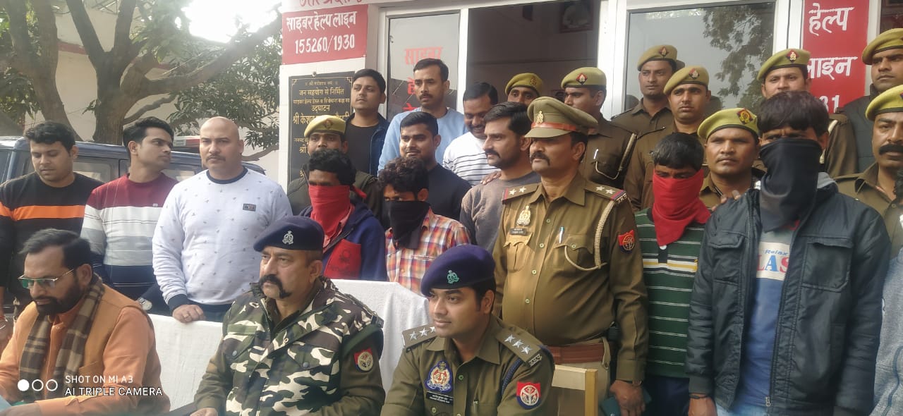 बहराइच( राष्ट्र की परम्परा) पुलिस और एसओजी टीम ने 23 जनवरी को व्यापारी पुत्र से 12 लाख की लूट का खुलासा कर दिया है। पुलिस टीम ने लूट के पांच आरोपितों को पकड़ा है। उनके पास से 8.8 लाख रूपये नकदी, दो बाइक और तमंचा भी बरामद हुआ है। पुलिस ने सभी के विरुद्ध मुकदमा दर्ज कर जेल भेज दिया है। जबकि बरामद सामान को सीज कर दिया है। डीआईजी ने खुलासा करने वाली पुलिस टीम को 50 हजार का इनाम देने की घोषणा की है। पयागपुर थाना अंतर्गत भूपगंज बाजार निवासी गौरव अग्रवाल पुत्र 23 जनवरी को 1197260 रूपये बैग में लेकर सेंट्रल बैंक में जमा करने जा रहे थे। रेलवे स्टेशन मार्ग पहुंचने पर बाइक सवार बदमाशों ने पिस्टल लगाकर रुपयों भरा बैग छीन लिया था। विरोध करने पर गौरव की सभी ने पिटाई की थी। गौरव के भाई दीपक ने अज्ञात के विरुद्ध थाने में मुकदमा दर्ज कराया था। डीआईजी उपेंद्र अग्रवाल और एसपी प्रशांत वर्मा ने मौके का मुआयना कर तीन टीमों को घटना का खुलासा करने का निर्देश दिए था। अपर पुलिस अधीक्षक नगर कुंवर ज्ञानंजय सिंह ने बताया कि सर्विलांस टीम की मदद से शातिर बदमाशों की पहचान हुई। सोमवार को सभी के हुजूरपुर रोड स्थित लकड़ी पुल पर होने की सूचना मिली।जिस पर प्रभारी निरीक्षक राजकुमार पांडेय और एसओजी प्रभारी अनुज त्रिपाठी पुलिस बल के साथ मौके पर पहुंचे। पुलिस ने सभी पांच अपराधियों को पकड़ लिया। एएसपी ने प्रेस वार्ता करते हुए बताया कि इसराइल , लुकाम निशाद उर्फ प्रेम कुमार , विनोद कुमार , सतपाल यादव,राहुल को पकड़ा गया है। सभी के विरुद्ध मुकदमा दर्ज कर जेल भेज दिया गया है।पुलिस क्षेत्राधिकारी ने बताया कि सभी के पास से 8.8 लाख रूपये नकदी, दो बाइक, तमंचा और कारतूस बरामद हुआ है। जिसे सीज कर दिया गया है। उन्होंने बताया कि लूट के रूपये से सभी ने एक बाइक भी खरीद ली थी। खुलासा के दौरान विधायक सुभाष त्रिपाठी समेत पुलिस टीम मौजूद रही। अपर पुलिस अधीक्षक नगर कुंवर ज्ञानंजय सिंह ने बताया कि पुलिस टीम ने तत्परता के साथ घटना का खुलासा किया है। जिस पर डीआईजी की ओर से टीम को 50 हजार का इनाम देने की घोषणा की गई है।