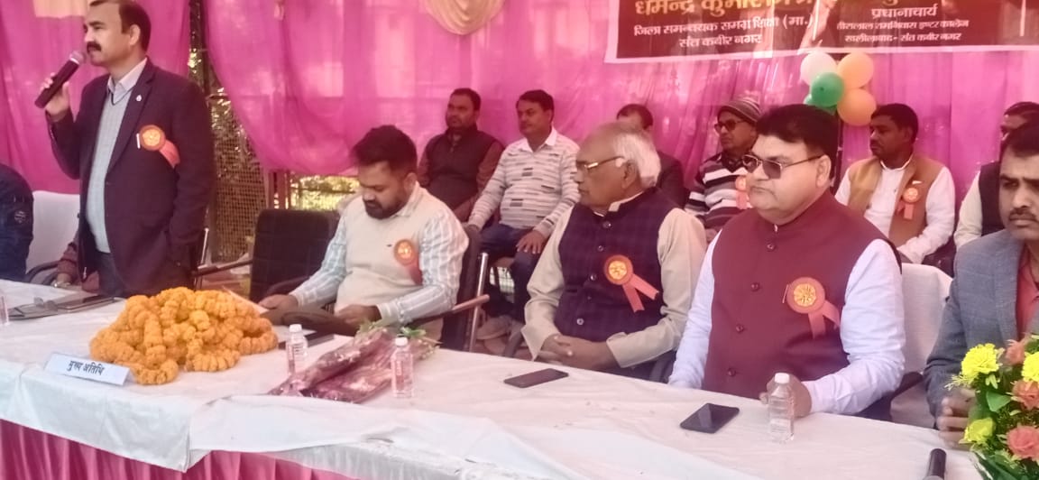 जिला विद्यालय निरीक्षक हरिश्चन्द्र नाथ, राम कुमार सिंह प्रधानाचार्य, हीरा लाल राम निवास इंटर कॉलेज, खलीलाबाद एवं धर्मेन्द्र कुमार मिश्र, जिला समन्वयक, समग्र शिक्षा (मा०) द्वारा मुख्य अतिथि एवं विशिष्ट अतिथि को बुके, अंग वस्त्र तथा स्मृति चिन्ह देकर स्वागत किया गया।