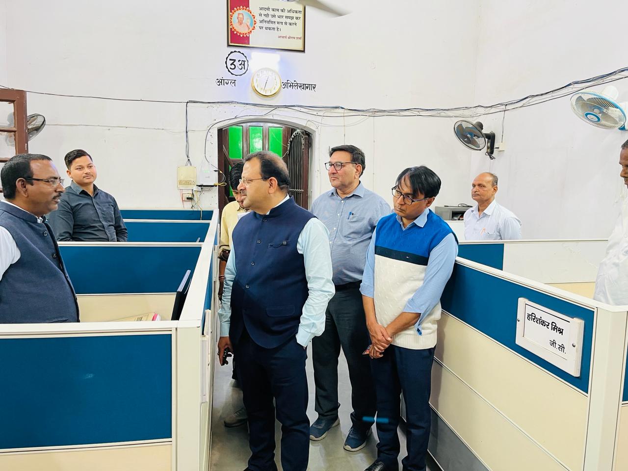 बलिया(राष्ट्र की परम्परा)l जिलाधिकारी रवींद्र कुमार ने बृहस्पतिवार को कलेक्ट्रेट का औचक निरीक्षण किया। उन्होंने आंग्ल अभिलेखागार, संग्रह अनुभाग, प्रपत्र गृह, सीलिंग अनुभाग, राजस्व अभिलेखागार,भूलेख अनुभाग और सिटी मजिस्ट्रेट कार्यालय/ न्यायालय में जाकर वहां के कामकाज और फाइलों के उचित रख रखाव की व्यवस्था का जायजा लिया और आवश्यक दिशा निर्देश दिया।