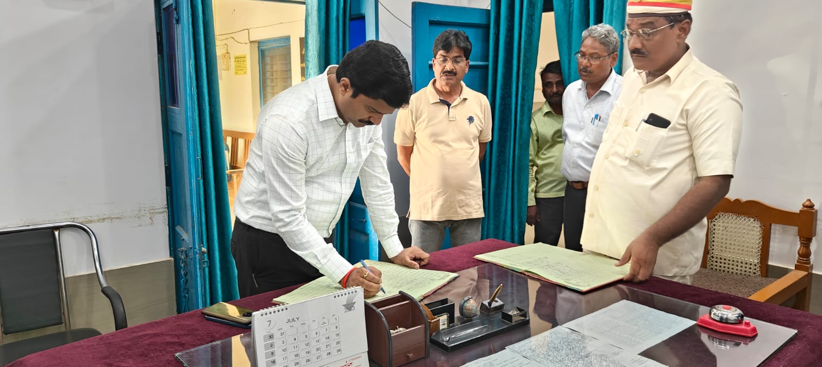 इस दौरान उन्होंने अधिकारी/ कर्मचारियों की उपस्थिति पंजिका को देखा। अधिकांश कर्मचारी उपस्थित पाए गए, कुछ कर्मचारियों की 2 ब्लॉकों में संबद्धता पाई गई। जिलाधिकारी महोदय ने निर्देश दिया कि ऐसे कर्मचारी जिनकी 2 ब्लॉकों में संबद्धता है उनका रोस्टर बनाया जाए एवं रोस्टर के अनुसार कर्मचारी की उपस्थिति सुनिश्चित कराया जाए।