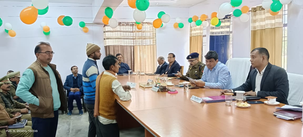 पुलिस अधीक्षक गोपाल कृष्ण चौधरी ने प्रार्थना पत्रों की सुनवाई करते हुए पुलिस अधिकारियों को निर्देश दिया है कि विभाग से संबंधित शिकायतों को गम्भीरता से सुने और त्वरित निस्तारण करना सुनिश्चित करें। निस्तारण में किसी प्रकार की समस्या आने पर तत्काल संज्ञान में लाये, जिससे प्रकरण का समयान्तर्गत निस्तारण हो सके। उप जिलाधिकारी शत्रुहन पाठक ने बताया कि कुल 61 प्रार्थना पत्र प्राप्त हुआ, जिसमें से 3 का मौके पर निस्तारण किया गया। इसमें राजस्व के 33, पुलिस व पूर्ति के 6-6, विकास के 4, समाज कल्याण व शिक्षा के 2-2, स्वास्थ्य के 1 तथा अन्य विभागों से 7 प्रार्थना पत्र प्राप्त हुये।