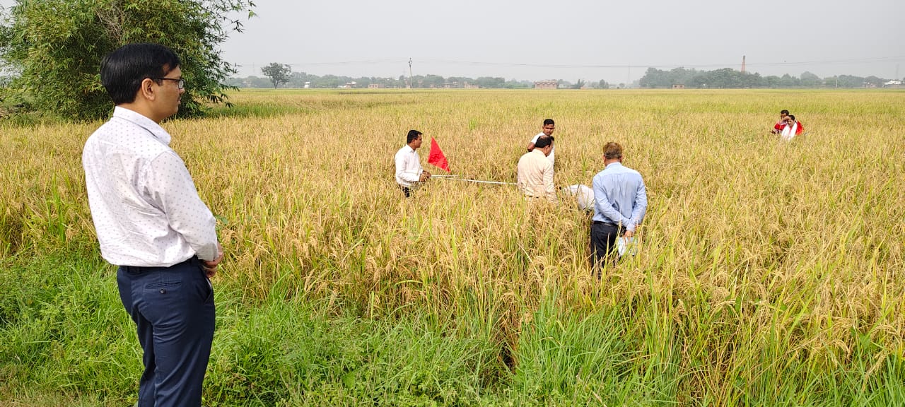 बलिया (राष्ट्र की परम्परा)। जिलाधिकारी प्रवीण कुमार लक्षकार ने आज सदर तहसील के ग्राम मिड्ढा में फसल धान की क्रॉप कटिंग के कार्यों का निरीक्षण किया। जिलाधिकारी ने फसल धान की क्रॉप कटिंग कराकर उत्पादकता का आकलन कर सीसीई एग्री ऐप पर अपलोड कराया तथा उपस्थित किसानों से अपील किया कि धान क्रय केंद्र पर ही धान का विक्रय करें व पराली न जलाए। ग्राम मिड्ढा में फसल धान की उत्पादकता का आकलन के लिए 02 क्रॉप कटिंग कराया गया। किसान श्री कुबेर सिंह के खेत के गाटा संख्या-686 पर प्रथम क्रॉप कटिंग किया गया,जिसमे तौल कराने पर उत्पादन 20.680 किलोग्राम पाया गया। किसान श्री मोहन सिंह के खेत के गाटा संख्या-822 पर द्वितीय क्रॉप कटिंग किया गया, जिसमे तौल कराने पर उत्पादन 9.770 किलोग्राम पाया गया। प्रधानमंत्री फसल बीमा योजना के अंतर्गत किसानो को फसल क्षतिपूर्ति का भुगतान करने के लिए क्रॉप कटिंग आंकड़ों का अत्यधिक महत्व होता है ।