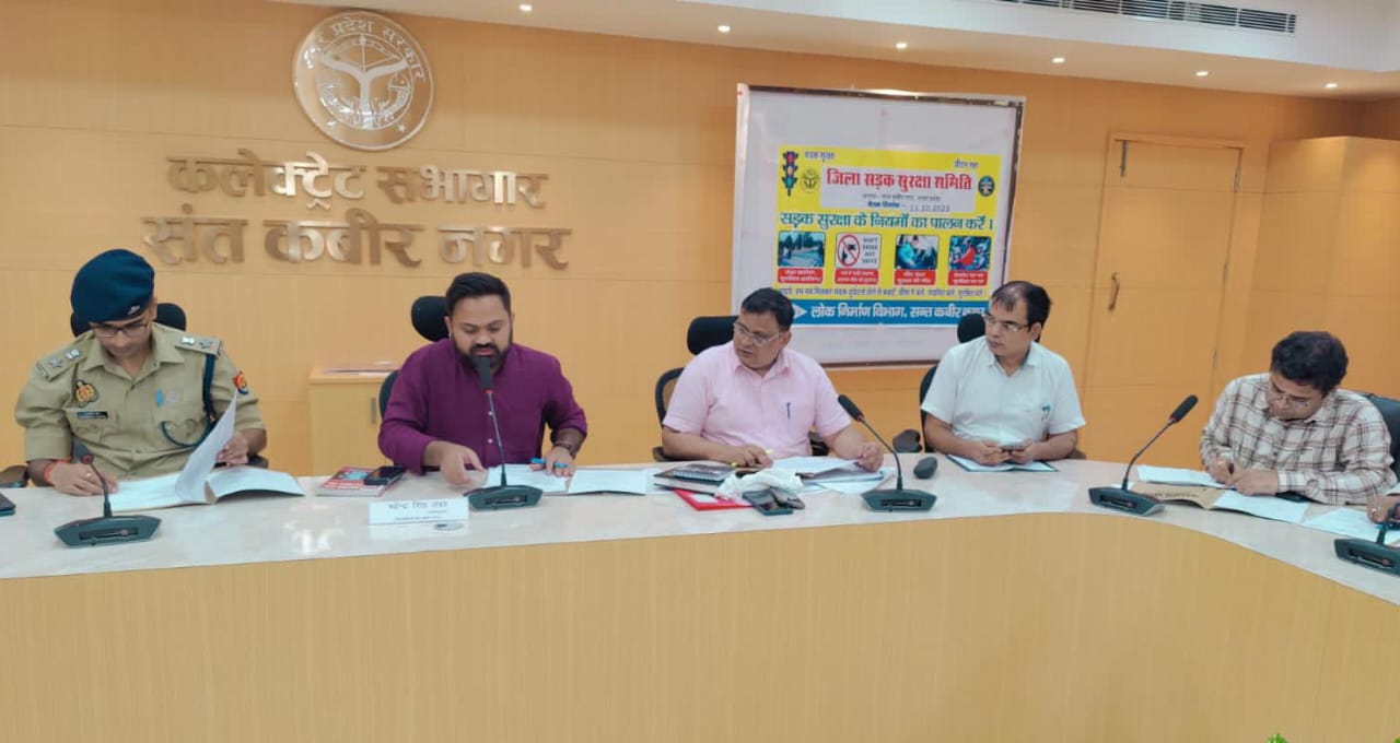 संत कबीर नगर (राष्ट्र की परम्परा)। जिलाधिकारी महेन्द्र सिंह तंवर व पुलिस अधीक्षक सत्यजीत गुप्ता की संयुक्त अध्यक्षता में जिला सड़क सुरक्षा समिति एवं खलीलाबाद शहर को यातायात प्रबन्धन एवं सुरक्षा के दृष्टिकोण से सेफ सिटी के रूप में विकसित किये जाने के संबंध में बैठक कलेक्ट्रेट सभागार में आयोजित हुई। इस अवसर पर अपर जिलाधिकारी जय प्रकाश उपस्थित रहे।