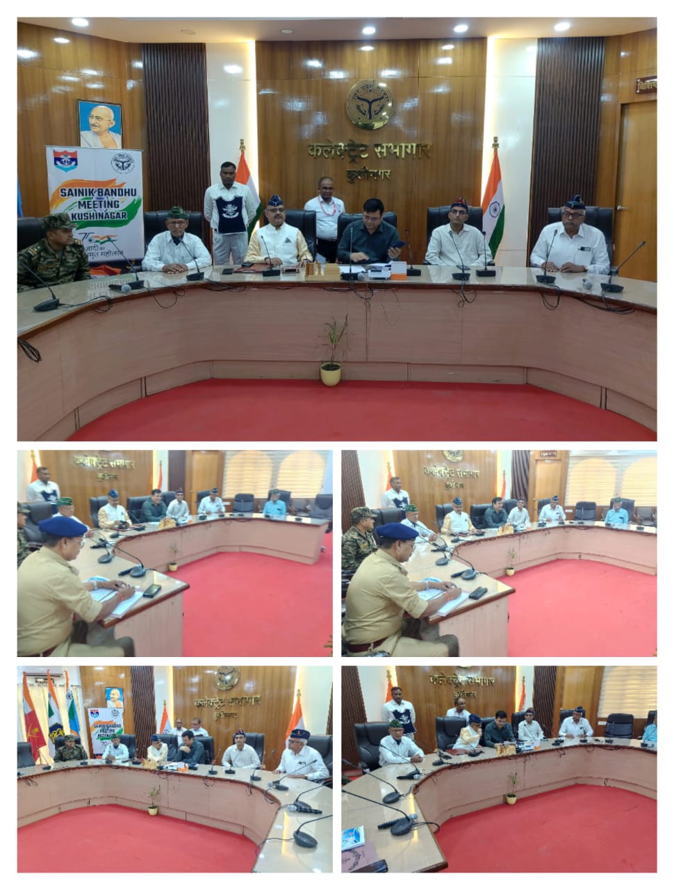 कुशीनगर (राष्ट्र की परम्परा)। कलेक्ट्रेट सभागार में सोमवार को अपर जिलाधिकारी (वित्त एवं राजस्व) वैभव मिश्रा की अध्यक्षता में जिला सैनिक बंधु की बैठक सम्पन्न हुई। बैठक में जनपद के पूर्व सैनिकों, वीर नारियों एवं उनके आश्रितों से संबंधित विभिन्न कल्याणकारी योजनाओं की समीक्षा की गई।बैठक के आरम्भ में एडीएम वैभव मिश्रा एवं जिला सैनिक कल्याण एवं पुनर्वास अधिकारी विंग कमांडर (अ.प्रा.) आलोक सक्सेना ने उपस्थित अधिकारियों और पूर्व सैनिकों का स्वागत किया। इसके बाद पिछली बैठक की कार्यवाही की पुष्टि की गई तथा 23 सितम्बर 2025 को लिए गए निर्णयों के अनुपालन की समीक्षा की गई।बैठक में बताया गया कि वर्तमान वित्तीय वर्ष में अब तक 31 पूर्व सैनिकों, विधवाओं एवं आश्रितों को पेंशन, सहायता व अन्य लाभ प्रदान किए जा चुके हैं। शेष पात्र लाभार्थियों के प्रकरणों का शीघ्र निस्तारण कराने के निर्देश संबंधित अधिकारियों को दिए गए।अपर जिलाधिकारी ने कहा कि पूर्व सैनिकों एवं उनके आश्रितों के कल्याण हेतु संचालित योजनाओं का लाभ प्राथमिकता के आधार पर सुनिश्चित किया जाए तथा पात्र व्यक्तियों के आवेदन समयबद्ध रूप से निस्तारित हों।बैठक में डीपीटीओ नितेश सिंह, 50 यूपी बटालियन एनसीसी के अधिकारी कप्तान श्यामसुंदर अस्थाना, कप्तान लाल बहादुर, कप्तान दयाशंकर पाठक, अनिल सिंह, अमित त्रिपाठी सहित अनेक पूर्व सैनिक एवं संबंधित अधिकारी उपस्थित रहे। बैठक का संचालन प्रमाकर नाथ तिवारी, सहायक, जिला सैनिक कल्याण एवं पुनर्वास कार्यालय ने किया। कार्यक्रम के सफल संचालन में राजेश कुमार गुप्ता, श्रीमती धर्मशीला देवी एवं जालेंद्र प्रसाद सहित कर्मचारियों का सहयोग सराहनीय रहा।