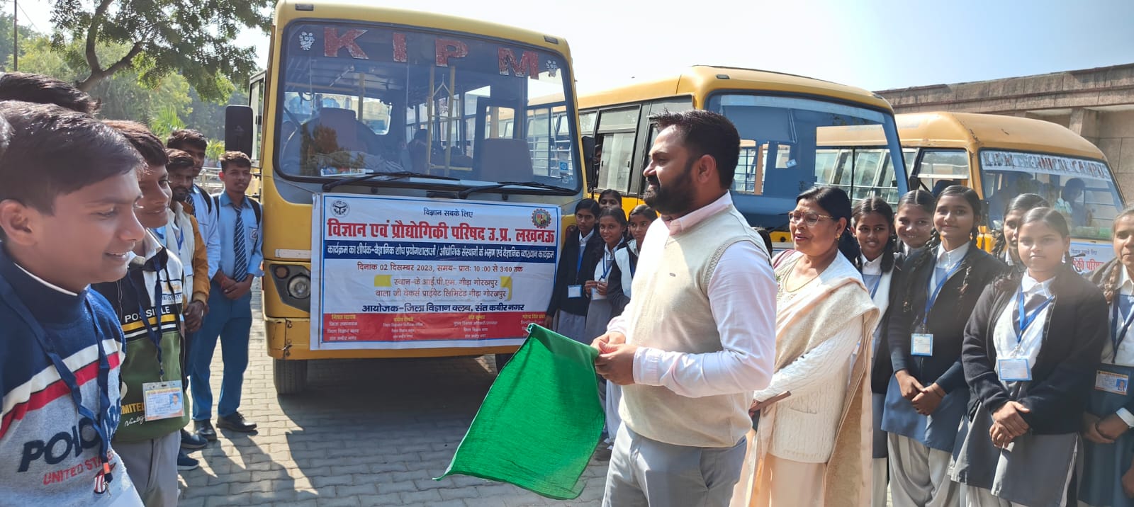 संत कबीर नगर (राष्ट्र की परम्परा)। जिलाधिकारी महेन्द्र सिंह तंवर ने जिला विज्ञान क्लब द्वारा जनपद के 15 विद्यालयों के 120 विद्यार्थियों को केआईपीएम गीडा तथा बालाजी बेकर्स प्राइवेट लिमिटेड गीडा, गोरखपुर के भ्रमण हेतु वाहन को हरी झंडी दिखाकर विद्यार्थियों को रवाना किया। इस अवसर पर जिला विद्यालय निरीक्षक सदीप चौधरी, जिला समन्वयक जिला विज्ञान केन्द्र, प्रधानाचार्या राजकीय बलिका विद्यालय बघौली निशा यादव उपस्थित रहीl।