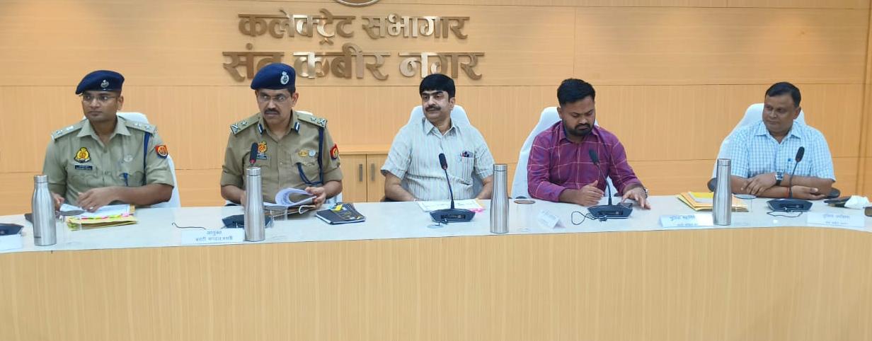 संत कबीर नगर(राष्ट्र की परम्परा)। मंडलायुक्त बस्ती मंडल, बस्ती अखिलेश सिंह व पुलिस महानिरीक्षक बस्ती, परिक्षेत्र बस्ती आरके भारद्वाज द्वारा संयुक्त रुप से जिलाधिकारी महेन्द्र सिंह तंवर व पुलिस अधीक्षक सत्यजीत गुप्ता की उपस्थिति में श्रावण मास, कावड़ यात्रा व मोहर्रम के दृष्टिगत जनपद में कानून व सुरक्षा व्यवस्था सहित त्योहारों को सकुशल मनाये जाने के संबंध में आवश्यक तैयारियों आदि से सम्बंधित समीक्षा बैठक कलेक्ट्रेट सभागार में आयोजित हुई। इस अवसर पर अपर जिलाधिकारी जय प्रकाश, मुख्य विकास अधिकारी जयकेश त्रिपाठी उपस्थित रहे।