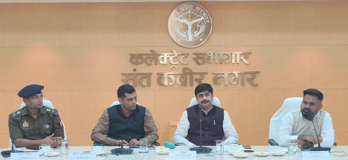संत कबीर नगर (राष्ट्र की परम्परा)। सम्मिलित राज्य/प्रवर अधीनस्थ सेवा (प्रारम्भिक) परीक्षा-2024 को सकुशल सम्पन्न कराये जाने हेतु मण्डलायुक्त बस्ती मण्डल बस्ती अखिलेश सिंह व उप पुलिस महानिरीक्षक दिनेश कुमार पी. की संयुक्त अध्यक्षता में जिला मजिस्ट्रेट/जिलाधिकारी महेन्द्र सिंह तंवर की उपस्थिति में कलेक्ट्रेट सभागार में बैठक सम्पन्न हुई। इस अवसर पर पुलिस अधीक्षक सत्यजीत गुप्ता, अपर जिलाधिकारी जय प्रकाश, मुख्य विकास अधिकारी जयकेश त्रिपाठी, अपर पुलिस अधीक्षक सुशील कुमार सिंह व पीसीएस प्रारम्भि परीक्षा-2024 में आयोग द्वारा नामित पर्यवेक्षक जितेन्द्र कुमार गुप्ता उपस्थित रहे।