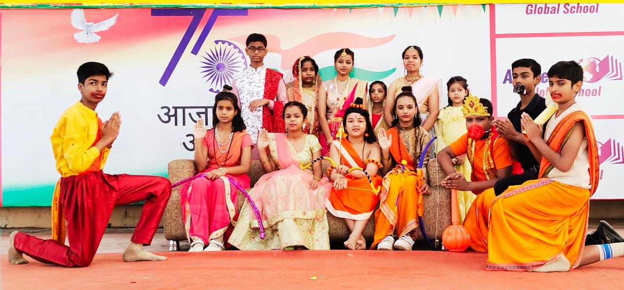 गोरखपुर (राष्ट्र की परम्परा) पादरी बाजार क्षेत्र के जंगल धूषण स्थित एकेडमिक ग्लोबल स्कूल में शनिवार को धूमधाम से दीपावली मनाई गई। इस अवसर पर छात्र रामचरितमानस के विभिन्न पात्रों की रूप सज्जा में नजर आए। इस दौरान छात्र राम, लक्ष्मण, भरत, शत्रुघ्न, माता सीता, वीरवर हनुमान, जामवंत, सुग्रीव, नल, नील, वशिष्ठ, विश्वामित्र, रावण, मेघनाथ, कुंभकरण, विभीषण, कैकेयी, सुमित्रा, कौशल्या सहित अन्य किरदारों के रूप में नजर आए। नन्हे-मुन्ने बच्चों द्वारा सम्पूर्ण रामायण प्रस्तुत किया गया। रामलीला ने लोगों को भाव विभोर कर दिया। सीता की करुण पुकार सुनकर लोगों की आंखें नम हो गई तो वहीं राम द्वारा रावण वध किए जाने पर लोग भगवान श्री राम के जयकारे लगाने लगे। इसके बाद लंका पर विजय प्राप्त कर अयोध्या वापस लौटने पर छात्र बने नगर वासियों ने पूरे स्कूल में दिए जलाए। प्रधानाचार्य वीसी चॉको व प्रशासनिक अधिकारी अफरोज खान द्वारा भगवान श्री राम का राज्याभिषेक किया गया। कार्यक्रम का शुभारंभ मां सरस्वती की वंदना से हुआ। अंत में राष्ट्रगान के साथ कार्यक्रम का समापन हुआ। विद्यालय के चेयरमैन संजीव कुमार, निदेशक राजेश कुमार, सहायक निदेशक संदीप कुमार, प्रधानाचार्य वीसी चॉको, प्रशासनिक अधिकारी अफरोज खान, कोऑर्डिनेटर अजय रावत, अर्चना पाठक व सीबी मिश्रा ने सभी छात्रों, अभिभावकों व कर्मचारियों को दिवाली की शुभकामनाएं दीं। इस दौरान कार्तिकेय, रुद्र, आरव, आदर्श, कृष्णा, प्रांजल पांडेय, सुशांत, अस्मिता, अवनीश्री, समृद्धि, नैंसी, दुर्गेश, आरोही, राजत्व, आराध्या मिश्रा, मांडवी, ट्विंकल, ऋतिका, प्रांजना, शिक्षा, नैंसी, भूमि, रम्या, अनामिका, आस्था आदि ने रामायण के विभिन्न किरदार निभाए। धनतेरस पर छात्रों ने बनाई रंगोली धनत्रयोदशी पर विद्यालय में अन्तरसदनीय रंगोली प्रतियोगिता का आयोजन किया गया जिसमें अलग-अलग थीम पर छात्रों ने रंगोली बनाई। प्रतियोगिता में चारों सदनों के छात्रों ने प्रतिभाग किया। हर सदन से कुल 12 छात्रों ने प्रतिभाग करते हुए सुंदर रंगोली बनाकर खूब वाहवाही बटोरी।