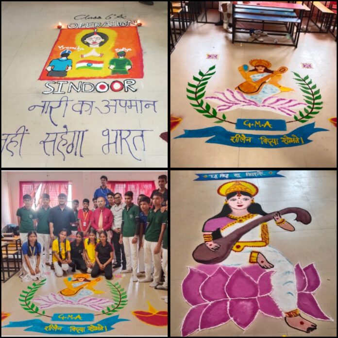 सलेमपुर/देवरिया (राष्ट्र की परम्परा) स्थानीय नगर पंचायत स्थित देवरिया जनपद के लब्धप्रतिष्ठित विद्यालय जी एम एकेडमी सीनियर सेकेंडरी स्कूल में दीपावली की पूर्व संध्या पर एक विशेष कार्यक्रम का आयोजन किया गया, जिसमें छात्र छात्राओं ने अपनी सृजनात्मकता का अनोखा प्रदर्शन किया। पहली से चौथी एवं पांचवीं से बारहवीं कक्षाओं द्वारा दो चरणों में संपन्न रंगोली प्रतियोगिता हुई, जिसमें बच्चों ने अपनी कलात्मकता से विद्यालय को खूबसूरत परिदृश्य में बदल दिया। इसके साथ ही छात्र- छात्राओं ने मनोहारी सांस्कृतिक प्रस्तुतियों से सभी का दिल जीत लिया।