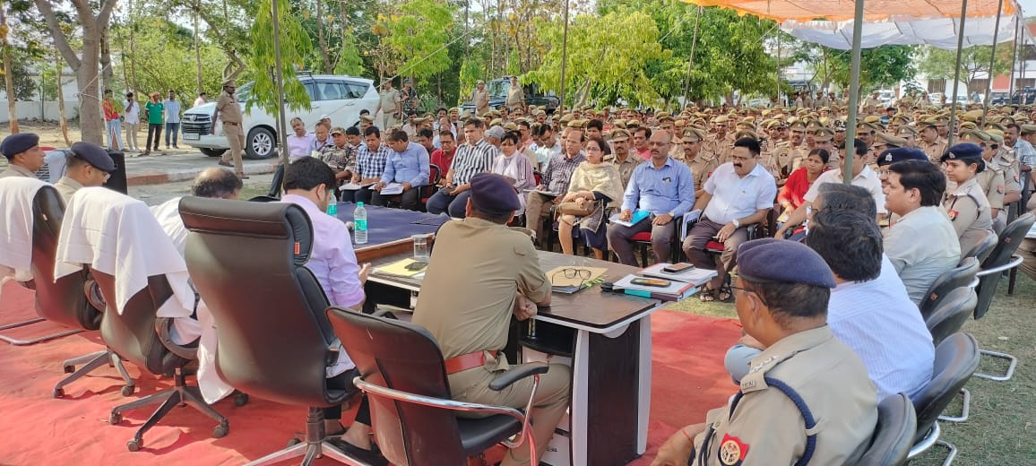 संत कबीर नगर (राष्ट्र की परम्परा)। जनपद में 11 मई 2023 को द्वितीय चरण में होने वाले नगरीय निकाय सामान्य निर्वाचन-2023 को निष्पक्ष व सकुशल सम्पन्न कराने के दृष्टिगत जिला मजिस्ट्रेट/जिला निर्वाचन अधिकारी(न0नि0) संदीप कुमार व पुलिस अधीक्षक सत्यजीत गुप्ता द्वारा संयुक्त रुप से अपर जिला मजिस्ट्रेट/उप जिला निर्वाचन अधिकारी अभिनव रंजन श्रीवास्तव व अपर पुलिस अधीक्षक संतोष कुमार सिंह के साथ रिजर्व पुलिस लाइन ग्राउंड में मतदान प्रक्रिया में लगे पुलिस/प्रशासनिक/अर्धसैनिक बलों के अधिकारी/कर्मचारीगणों को मतदान प्रक्रिया को सकुशल संपन्न कराने के लिए ब्रीफ किया गया ।