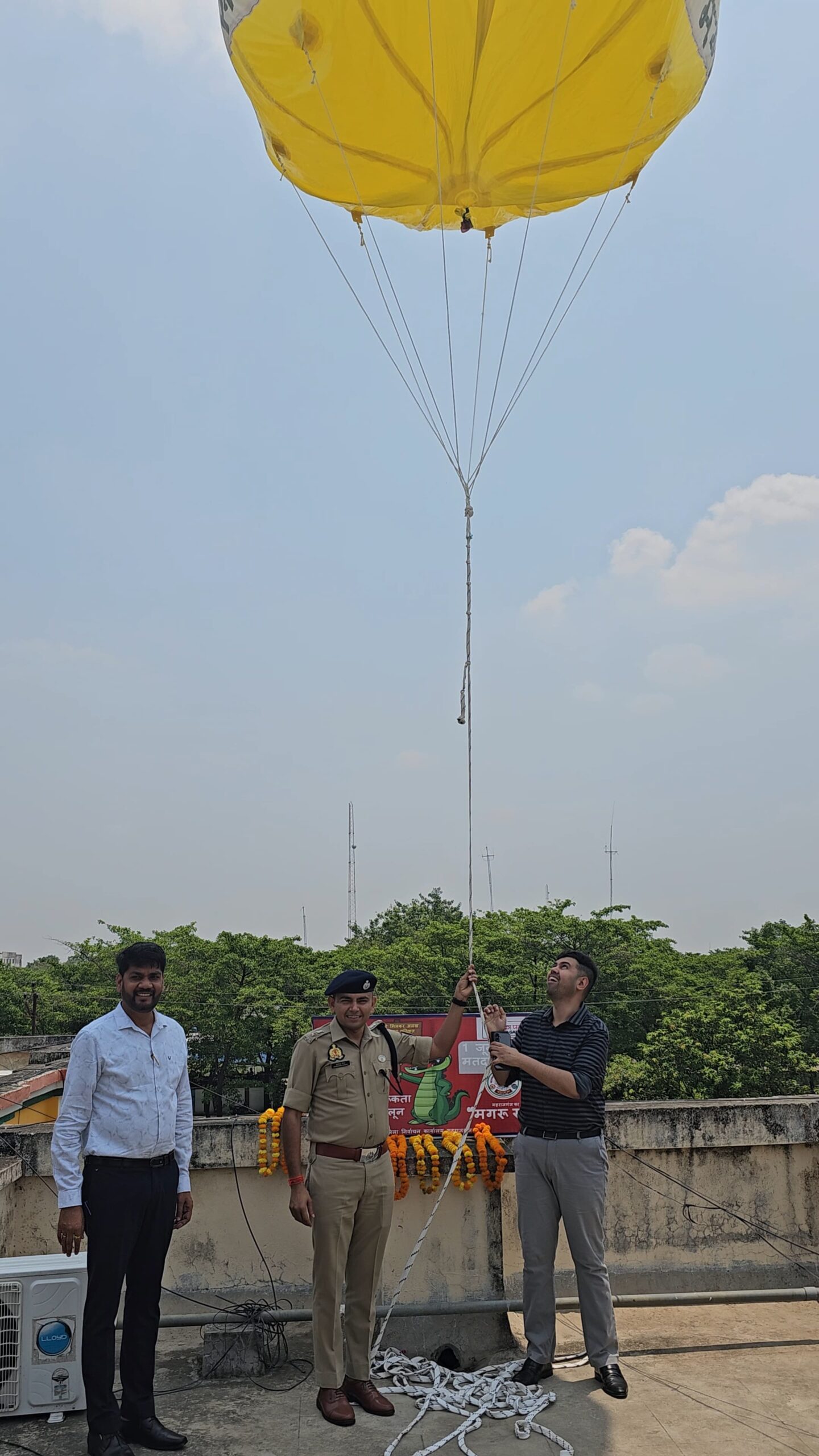 जिलाधिकारी ने मीडिया से बात करते हुए कहा कि जनपद में व्यापक स्तर पर मतदाता जागरूकता कार्यक्रम चलाया जा रहा है। इसी क्रम में आज हॉट एयर बैलून उड़ाकर लोगों को 01 जून को मतदान करने का संदेश दिया गया। हॉट एयर बैलून पर जनपद महराजगंज के लोगो व मैस्कॉट मगरू महराज और भारत निर्वाचन आयोग के स्वीप लोगो को प्रदर्शित किया गया है।