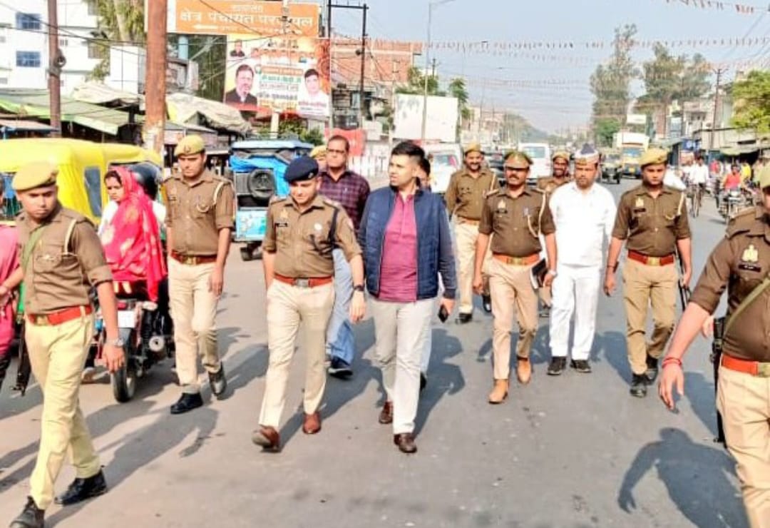 महराजगंज(राष्ट्र की परम्परा)। जिलाधिकारी अनुनय झा और पुलिस अधीक्षक सोमेंद्र मीणा द्वारा परतावल बाजार में पैदल मार्च कर लोगों को सुरक्षा का एहसास कराया गया।
