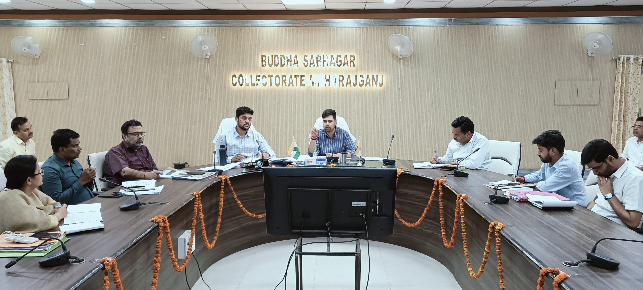 महराजगंज(राष्ट्र की परम्परा)l जिलाधिकारी अनुनय झा की अध्यक्षता में विकास कार्यो संबंधी विभिन्न योजनाओं की सीएम डैशबोर्ड पर प्रगति सहित पंचायतीराज, मनरेगा व एनआरएलएम के कार्यों की समीक्षा कलेक्ट्रेट सभागार में की गई।