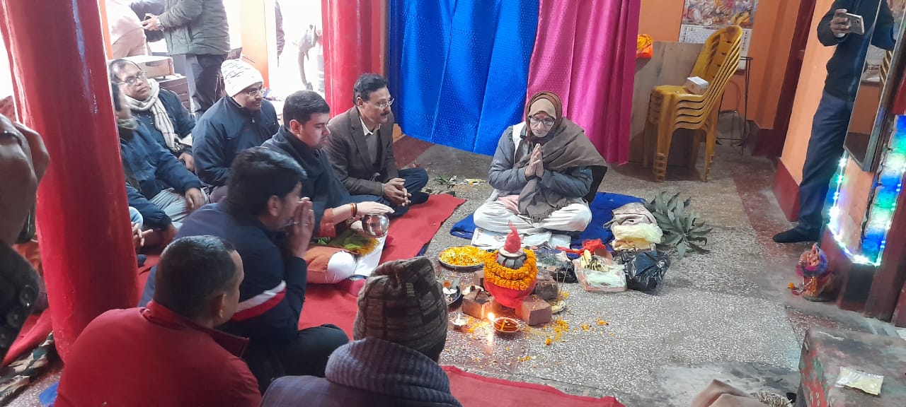 जिलाधिकारी अनुनय झा द्वारा गौरी–गणेश और श्रीराम सहित नौ ग्रहों का पूजन किया गया। उन्होंने मानव कल्याण सहित देश व समाज में सौहार्द्र की कामना की। पंडित सुरेंद्र मिश्रा और मंदिर के महंत संदीप दास ने कराया।