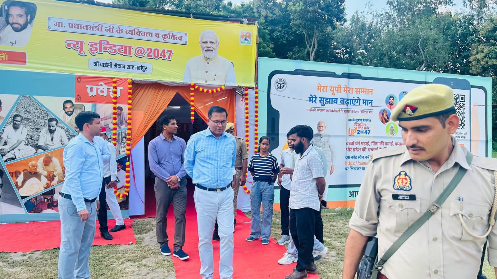 शाहजहांपुर(राष्ट्र की परम्परा)। सेवा पखवाड़ा कार्यक्रम के अंतर्गत सूचना एवं जनसंपर्क विभाग द्वारा प्रधानमंत्री नरेंद्र मोदी के व्यक्तित्व, कृतित्व व न्यू इण्डिया@2047 एवं प्रदेश सरकार सरकार की विभिन्न कल्याणकारी योजनाओं एवं उपलब्धियों से संबंधित दिनांक 17 सितंबर से 02 अक्टूबर 2025 तक आयोजित की जा रही 15 दिवसीय प्रदर्शनी राजकीय इंटर कॉलेज में लगाई गई है। जिलाधिकारी ने प्रदर्शनी का औचक निरीक्षण किया। निरीक्षण के दौरान जिलाधिकारी ने छायाचित्र प्रदर्शनी में प्रधानमंत्री के बचपन से लेकर अब तक के जीवन के विविध आयामों को समाहित करते हुए लगे फ्लेक्स बोर्डो का अवलोकन किया। जिलाधिकारी ने कहा कि प्रदर्शनी के माध्यम से केंद्र व प्रदेश सरकार द्वारा संचालित विभिन्न योजनाओं का प्रचार प्रसार किया जाए तथा जन सामान्य को केंद्र एवं प्रदेश सरकार द्वारा चलाई जा रही जनकल्याणकारी योजनाओं का लाभ लेने हेतु अधिक से अधिक जागरूक किया जाए। उन्होंने निर्देश दिए की जनपद के विभिन्न विद्यालयों के बच्चों, कस्तूरबा गांधी विद्यालयों के बच्चों को लाकर प्रदर्शनी का अवलोकन कराया जाए। साथ ही उन्होंने प्रदर्शनी में साफ सफाई व्यवस्था सहित अन्य व्यवस्थाओं में सुधार करने के निर्देश संबंधित अधिकारी को दिए। निरीक्षण के दौरान जिला विद्यालय निरीक्षक हरिवंश कुमार मौजूदर हे।