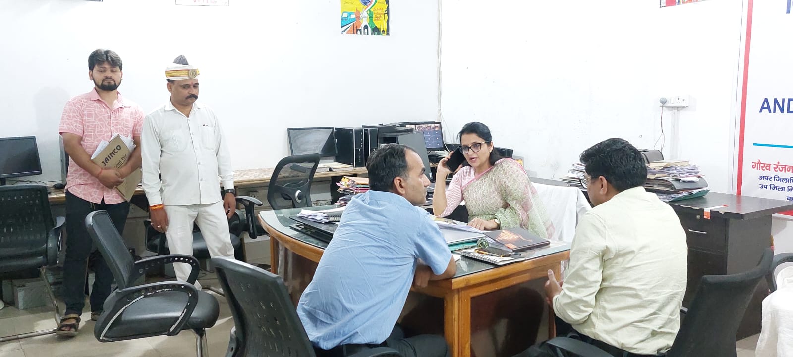 बहराइच(राष्ट्र की परम्परा)लोकसभा सामान्य निर्वाचन-2024 को स्वतन्त्र, निष्पक्ष एवं शान्तिपूर्वक सम्पन्न कराये जाने के उद्देश्य से कलेक्ट्रेट में स्थापित इंटीग्रेटेड कन्ट्रोल रूम का जिलाधिकारी मोनिका रानी ने निरीक्षण कर विभिन्न व्यवस्थाओं के बारे में जानकारी प्राप्त करने के साथ-साथ डीएम ने ज़ोनल व सेक्टर मजिस्ट्रेटों से मोबइल पर वार्ता कर जिले में मतदाता पर्ची वितरण कार्य की प्रगति का जायज़ा लेते हुए l निर्देश दिया कि शत प्रतिशत मतदाता पर्ची का वितरण सुनिश्चित कराया जाए ताकि 13 व 20 मई 2024 क़ो जनपद में होने वाले मतदान में मतदाताओं क़ो मताधिकार का प्रयोग करने में किसी प्रकार की असुविधा न हो। इस अवसर पऱ मुख्य राजस्व अधिकारी देवेन्द्र पाल सिंह,जिला पंचायत राज अधिकारी राघवेंद्र द्विवेदी,अतिरिक्त मजिस्ट्रेट ज्योति चौरसिया,ई-डिस्ट्रिक्ट मैनेजर सुमित तिवारी व अन्य संबंधित मौजूद रहे।