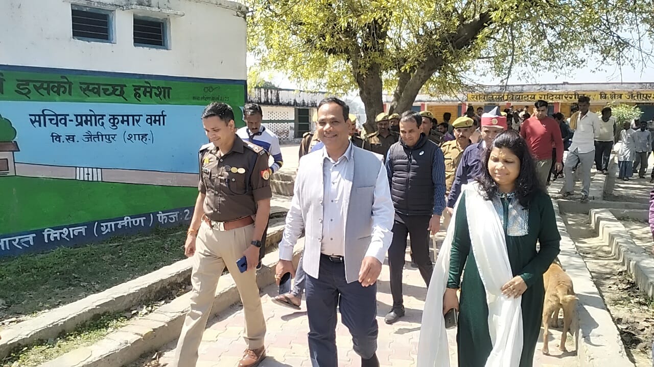 जैतीपुर/शाहजहांपुर(राष्ट्र की परम्परा) जिलाधिकारी उमेश प्रताप सिंह व एसपी अशोक कुमार मीणा ने जनपद शाहजहांपुर के ब्लाक जैतीपुर क्षेत्र के गांव बजेड़ा भगवानपुर गढ़िया रंगीन खमरिया में पहुंचकर बूथ स्थलों का निरीक्षण किया, जिसमें उन्होंने बीएलओ से वोटर लिस्ट की जानकारी ली,और लोगों से लोगों से यह अपील कीया कि आप सभी सम्मानित जन होली का त्यौहार शांतिपूर्वक मनाये किसी भी प्रकार का लड़ाई झगड़ा ना करें। इसी बीच उन्होंने लोगों से यह भी कहा कि वह किसी के भी बहकावे में आकर मतदान न करें और ना ही किसी भी प्रकार के लालच में आए अगर कोई भी व्यक्ति या कोई उम्मीदवार किसी भी प्रकार की चुनाव प्रचार सामग्री या अवैध तरीके से दारू या रुपयों का वितरण करता है तो उसके लिए उन्होंने लोगों को टोल फ्री 1950 नंबर भी बताया । उन्होंने कहा कि अगर कोई भी व्यक्ति इस नंबर पर सूचना देता है तो उसका नाम और मोबाइल नंबर गोपनीय रखा जाएगा, और दोषियों के विरुद्ध कड़ी कार्यवाही की जाएगी। इसी बीच गढ़िया रंगीन के संविलियन विद्यालय में शिक्षकों की उपस्थिति का जायजा लिया, जहां पर शिक्षकों की कमी होने के कारण बच्चों को उच्च शिक्षा नहीं मिल पा रही है। जिलाधिकारी उमेश प्रताप सिंह ने जल्द से जल्द शिक्षकों की कमी को पूरा करने का आश्वासन दिया। इस मौके पर गढ़िया रंगीन के ग्राम प्रधान लालू प्रसाद प्रजापति, अनमोल यादव, करण प्रजापति सहित तमाम ग्रामीण मौजूद रहे।