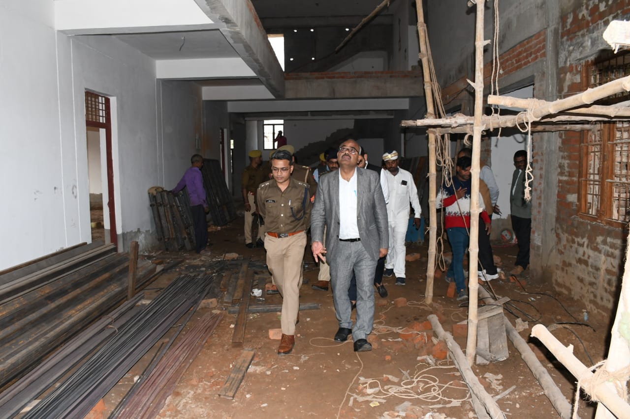 देवरिया (राष्ट्र की परम्परा)l जिलाधिकारी जितेंद्र प्रताप सिंह एवं पुलिस अधीक्षक संकल्प शर्मा ने शनिवार को बरियारपुर में निर्माणाधीन थाना भवन का निरीक्षण किया 7.65 करोड रुपए की लागत से बन रहे नए आवासीय थाना भवन का निर्माण कार्यदायी संस्था यूपीपीसीएल द्वारा किया जा रहा है। मौके पर प्रोजेक्ट की जानकारी देने वाला बोर्ड न मिलने पर डीएम ने नाराजगी व्यक्त की। उन्होंने कार्य की गुणवत्ता को सुनिश्चित करते हुए निर्माण कार्य जनवरी तक पूर्ण करने का निर्देश दिया। इस दौरान एसडीएम सौरभ सिंह सहित विभिन्न अधिकारी मौजूद थे।