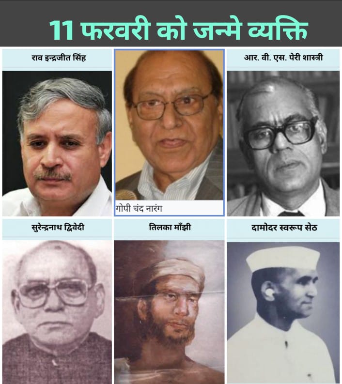 11 फरवरी को जन्मे व्यक्ति भारत की राजनीति, साहित्य, प्रशासन और स्वतंत्रता आंदोलन में अमिट छाप छोड़ चुके हैं। यह दिन प्रेरणा, संघर्ष और राष्ट्र निर्माण के संकल्प का प्रतीक है।