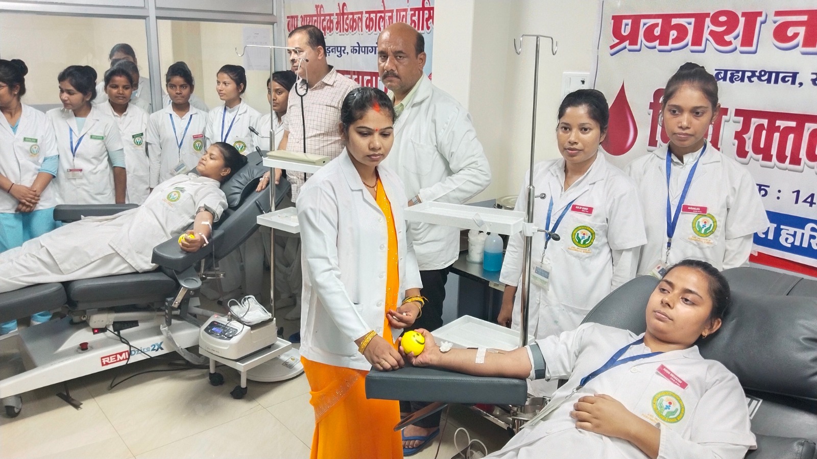 प्रकाश हॉस्पिटल एवं ट्रामा सेंटर के ब्लड बैंक सेंटर में विश्व रक्तदान दिवस के अवसर पर विशाल ब्लड डोनेशन कैंप का आयोजन किया गया। जिसमें मुख्य अतिथि के रूप में मुख्य चिकित्सा अधिकारी डॉ नरेश अग्रवाल एवं एसीएमओ डॉ आर एन सिंह उपस्थित रहे। इस अवसर पर प्रकाश नर्सिंग स्कूल में प्रशिक्षणरत छात्र छात्राओं ने रक्तदान किया।