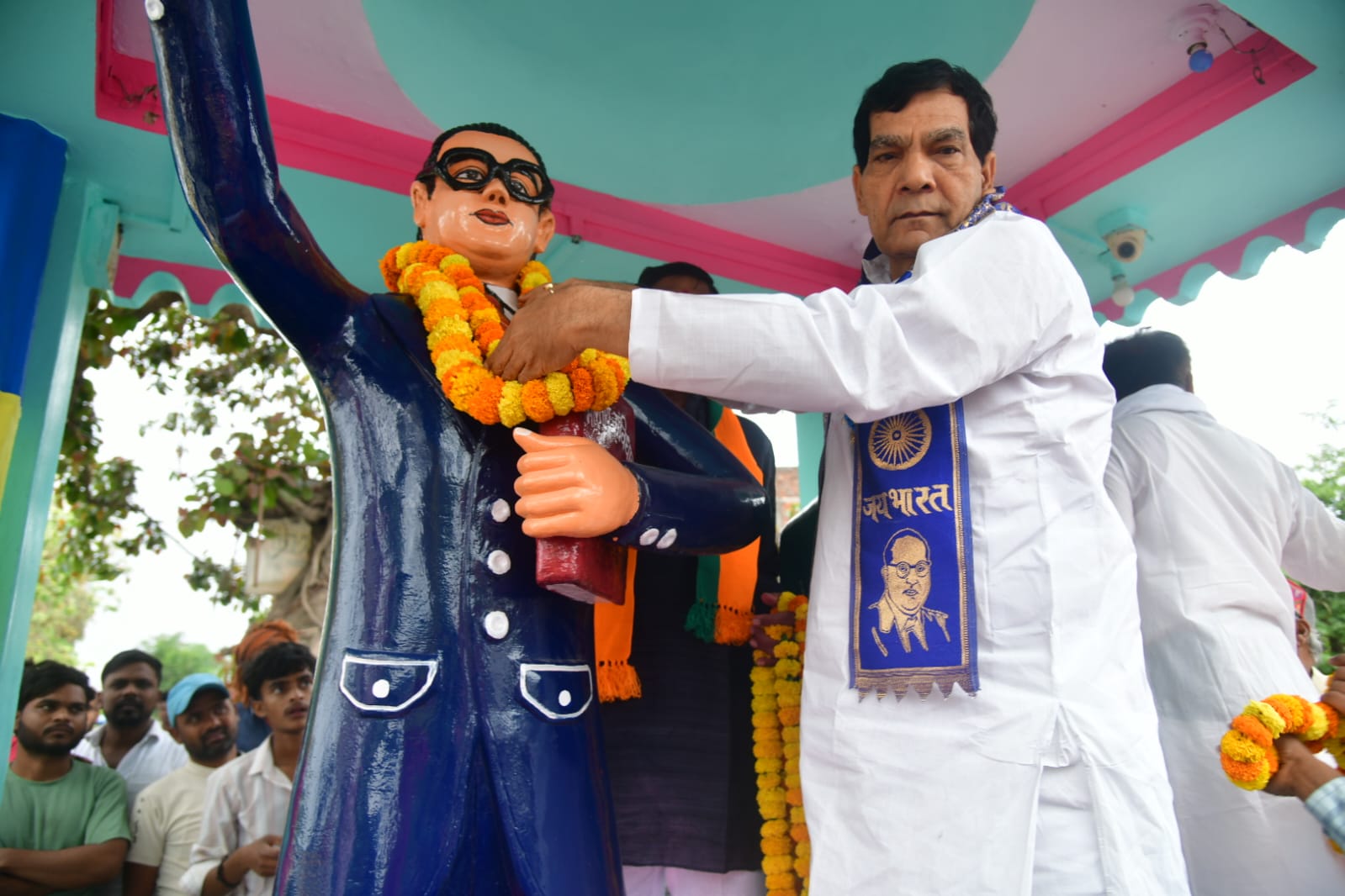 मंत्री ए.के. शर्मा शनिवार को देर शाम मऊ जिले के बड़ागांव में परमपूज्य डॉo भीमराव आंबेडकर जी की प्रतिमा पर माल्यार्पण कर श्रद्धा सुमन अर्पित किया और उनकी जन्म जयंती से पहले वहां की सफाई, प्रकाश व अन्य व्यवस्थाओं का निरीक्षण भी किया। वहां पर उपस्थित लोगों से संवाद के दौरान लोगों ने बताया कि भाजपा सरकार बाबा साहब की भावना के अनुरूप गरीबों को राशन, मकान, शौचालय, घरेलू गैस, बिजली कनेक्शन, मुफ्त इलाज सहित कई अन्य योजनाओं के माध्यम से सबके कल्याण हेतु कार्य कर रही है।