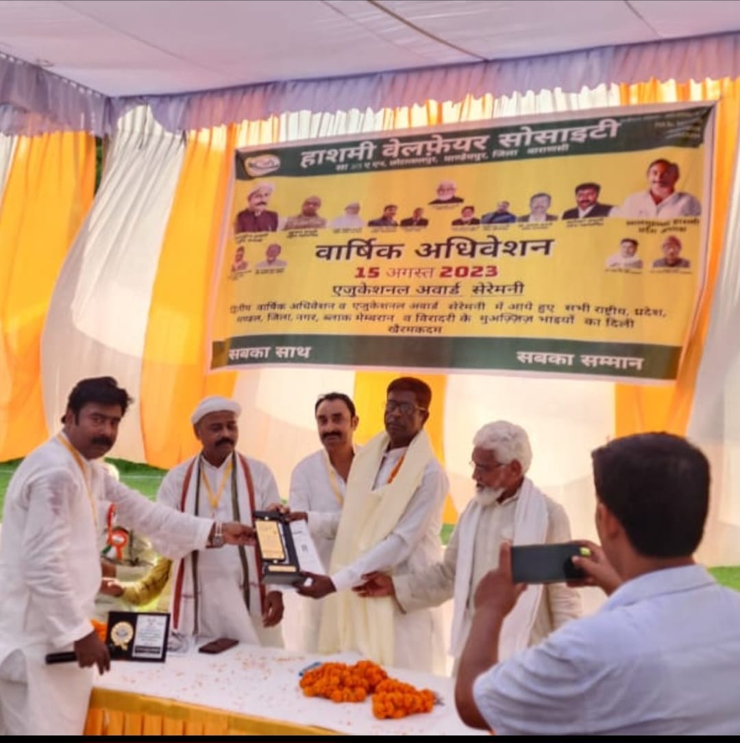 हाशमी वेलफ़ेयर सोसाइटी का द्वितीय अधिवेशन व एजुकेशनल अवार्ड सेरेमनी का आयोजन त्रिभुवन वाटिका मोढ़ईला वाराणसी में हुआ जिसमे प्रदेश उपाध्यक्ष डॉक्टर असलम हाशमी सम्मानित हुए।इस मौके पर नव निर्वाचित नियुक्त प्रदेश उपाध्यक्ष सलेमपुर देवरिया से चलकर आये डॉ0असलम हाशमी ने भी तंज़ीम के कारवा को प्रदेश के कोने कोने तक पहुँचाने की बात कही साथ ही प्रदेश कोर कमेटी के प्रदेश सचिव डॉ0 कारीमुल्लाह हाशमी राष्ट्रीय/प्रदेश कमेटी के मेम्बरान द्वारा एजुकेशनल अवार्ड समारोह में आये हुए निःशुल्क कोचिंग सेंटरों में पढ़ रहे प्रति कोचिंग से (पांच-पाँच) मेघावी बच्चों को पिता के उपस्थिति में अवार्ड देकर सम्मानित किया गया। इस मौके पर हर जिले से जो बच्चे हाईस्कूल व इंटर में 70% से अधिक अंक पाकर पास हुए हैं उन्हें एजुकेशनल अवार्ड के तहत अवार्ड देकर सम्मानित किया गया। समाज के वे बच्चे या बच्चियां जो इन दो तीन सालों में पढ़ाई के दम पर आज डॉ0, इंजीनियर, टीचर, प्रोफेसर,या बैंकों में प्राइवेट कम्पनीयों में एम बी ए, एम सी ए, बी टेक, एम टेक कर एक अच्छी प्लेसमेंट के साथ जॉब में हुए है उन्हें भी सोसाइटी के बैनर तले अवार्ड देकर सम्मानित किया गया।