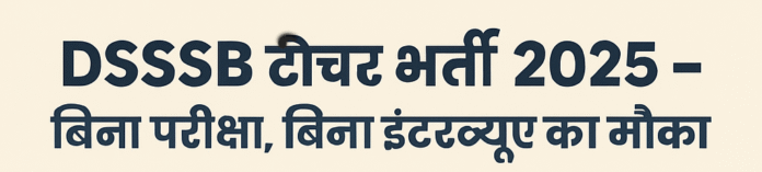 अगर आप दिल्ली के सरकारी स्कूलों में अध्यापक बनने का सपना देख रहे हैं तो आपके लिए अच्छी खबर है। दिल्ली अधीनस्थ सेवा चयन बोर्ड (DSSSB) ने प्राथमिक शिक्षक (PRT) के 1180 पदों पर भर्ती निकाली है। खास बात यह है कि इसमें न तो कोई लिखित परीक्षा देनी होगी और न ही इंटरव्यू। चयन केवल मेरिट के आधार पर होगा।