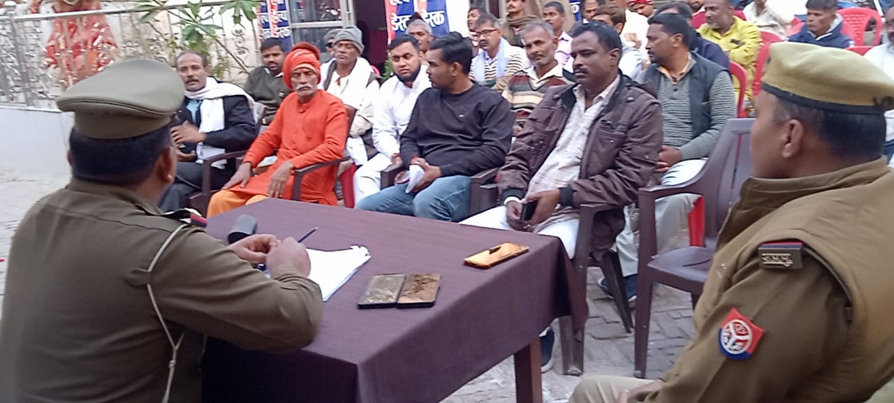 जिला के बिलरियागंज थाना प्रांगण में शिवरात्रि को देखते हुए पीस कमेटी की बैठक का आयोजन किया गया । इस बैठक में थाना क्षेत्र के कई गांव के संभ्रांत लोग मौजूद थे, उपस्थित लोगों से थानाध्यक्ष बिलरियागंज ब्रह्मदीन पाण्डेय ने शिवरात्रि के मेले के विषय में विस्तृत जानकारियां ली, उन्होंने पूछा कि कहीं भी किसी भी तरह की कोई दिक्कत या परेशानी हो तो लोग बताएं प्रशासन पूरी तरह से उनके साथ है । शिवरात्रि की झांकी या मेले मे किसी भी तरह का कोई व्यवधान पैदा न हो इसके लिए वालेंटियर्स और पुलिस प्रशासन साथ साथ रहेंगे। उन्होंने उपस्थित लोगों से कहा कि आप लोग अपने-अपने क्षेत्र में जाकर मांस बेचने वाले दुकानदारों से कह देंगे कि, शिवरात्रि के दिन यानी 16 फरवरी को अंडा, मीट, मछली की सभी दुकान पूरी तरह से बन्द रहेंगी, यदि कोई दुकान खोलते हुए पाया गया तो उसके साथ दण्डात्मक कार्रवाई की जायेगी।