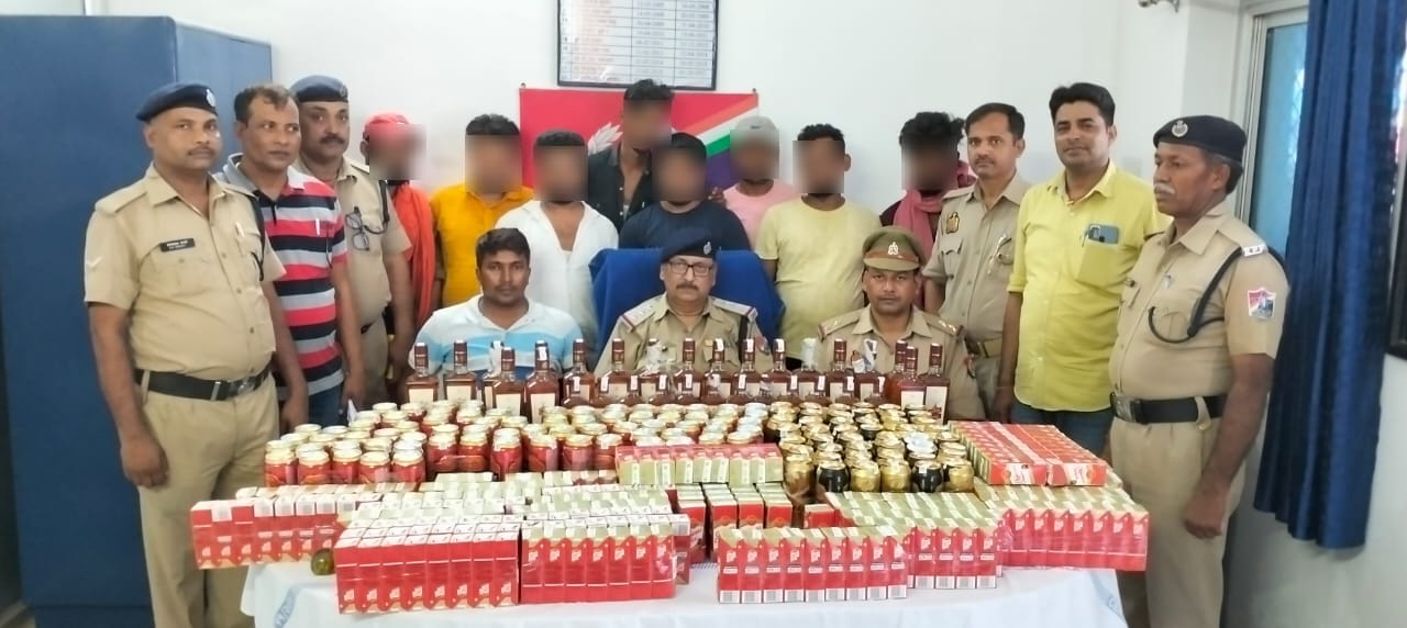 भटनी रेलवे स्टेशन पर निगरानी गस्त व चेकिंग के दौरान प्लेटफार्म संख्या 05 के पूर्वी छोर पर संदिग्ध हालत में 08 व्यक्तियों को 12 पिट्ठू बैग/ झोले को ले जाते देखा गया,जिन्हे रोककर पुछताछ किया गया सभी को बिना किसी अधिकार पत्र / टिकट के स्टेशन पर उपस्थित होना पाया गया । उन्होंने अपना नाम क्रमशः सोनू तिवारी निवासी ग्राम व पोस्ट – विठुना, थाना बसंतपुर जिला सिवान, सूरज कुमार निवासी ग्राम व पोस्ट जुड़कन थाना हुसैनगंज जिला सिवान, मनीष कुमार निवासी ग्राम इब्राहिमपुर पोस्ट दरियापुर थाना दरियापुर जिला छपरा, जितेंद्र कुमार निवासी ग्राम रहीमापुर पोस्ट बिदुपुर थाना बिदुपुर जिला वैशाली, विकास कुमार निवासी ग्राम पहलेजा दियरा पोस्ट सोनपुर थाना सोनपुर जिला छपरा , धर्मेंद्र कुमार निवासी ग्राम फलेजाशापुर पोस्ट व थाना सोनपुर जिला छपरा, आशीष कुमार निवासी ग्राम टिकरी पोस्ट हुसैनगंज थाना हुसैनगंज जिला सिवान,प्रदुम तिवारी निवासी ग्राम /पोस्ट पिपराशुक्ला थाना खुखुंदू जिला देवरिया ने पूछताछ के दौरान बताया कि बिहार राज्य में शराब प्रतिबंधित होने के कारण उत्तर प्रदेश के इलाकों से शराब लेकर रेल /बस के माध्यम से शराब को बिहार राज्य में ले जाकर अधिक कीमत लेकर बेच देते हैं। मौके पर उनके पास से 19 अदद रॉयल स्टेज विस्की 750 मिली,12 अदद रॉयल स्टेज 375 मिली, 48 अदद बुडवेजर बियर 500मिली, 72 अदद हावर्ड बियर 500 मिली, 331 अदद ऑफिसर्स च्वाइस टेट्रा पैक 180 मिली, सभी की कीमत 73160/- रुपये का बरामद हुआ। आठों व्यक्तियों को रेल अधिनियम की धारा 147 तथा आबकारी अधिनियम की धारा 60 के अंतर्गत हिरासत में लिया गया। गिरफ्तार व्यक्तियों अपराध का तरीका- बिहार राज्य में शराबबंदी के कारण होने वाले भारी लाभ के कारण तस्करों द्वारा उत्तर प्रदेश से शराब तस्करी कर ले जाकर अवैध रूप से बेचकर धन उगाही करना पाया गया । रेलवे सुरक्षा बल भटनी द्वारा क्राइम सं 312 /23 से 319/23 U/S 147 R Act dt 10.07.23 तथा राजकीय रेल पुलिस / भटनी द्वारा अपराध सं – 10 /23 से लगायत 17/23 U/S 60 Exise Act, मद्य निषेध उत्पाद संशोधित अधिनियम S/V सोनू तिवारी आदि क्रमशः 10.07.23 पंजीकृत किया गया है।