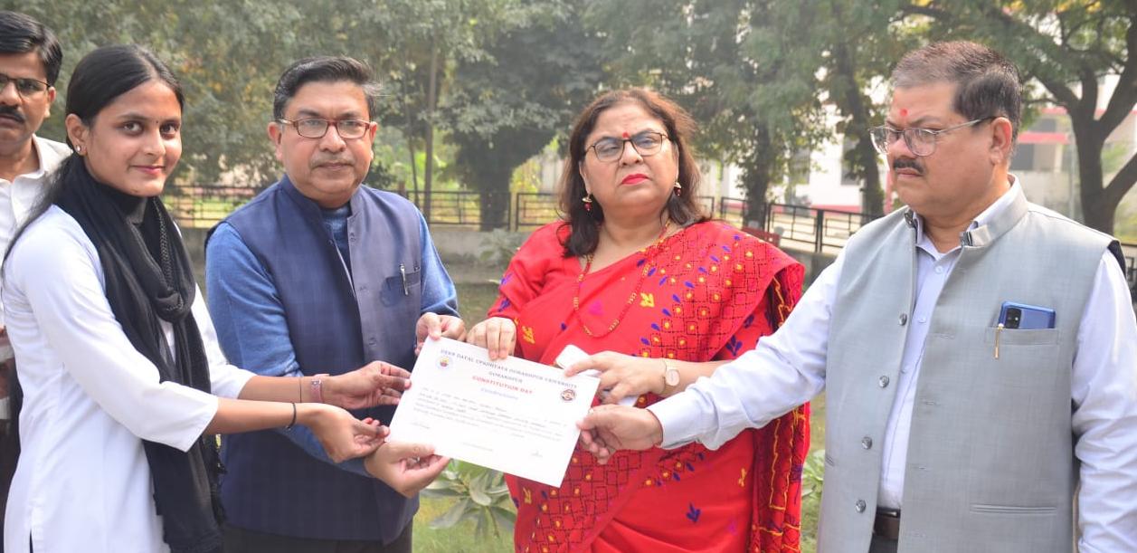 गोरखपुर (राष्ट्र की परम्परा)। दीनदयाल उपाध्याय गोरखपुर विश्वविद्यालय में जारी तीन दिवसीय ‘संविधान दिवस’ समारोह के तीसरे दिन बुधवार को विश्वविद्यालय के विधि संकाय द्वारा विभिन्न कार्यक्रमों का आयोजन किया गया। विधि संकाय द्वारा आयोजित संविधान दिवस समारोह के तीसरे दिन बी.ए.एलएल.बी.के विद्यार्थियों के द्वारा सर्वप्रथम सुबह 11:00 बजे ‘सोशल मीडिया का दुष्प्रभाव’ विषय पर नुक्कड़ नाटक का आयोजन किया गया। नुक्कड़ नाटक का मंचन, कला संकाय भवन तथा विश्वविद्यालय गेट पर किया गया। नुक्कड़ नाटक के दौरान विश्वविद्यालय की कुलपति प्रोफेसर पूनम टंडन के साथ ही विधि विभाग की अधिष्ठाता तथा अध्यक्ष प्रोफेसर अहमद नसीम, बी.ए.एलएल.बी. कार्यक्रम के कोऑर्डिनेटर तथा संविधान दिवस कार्यक्रम के समन्वयक प्रोफेसर जितेंद्र मिश्र सहित विभाग के सभी शिक्षक तथा कर्मचारी मौजूद रहे।